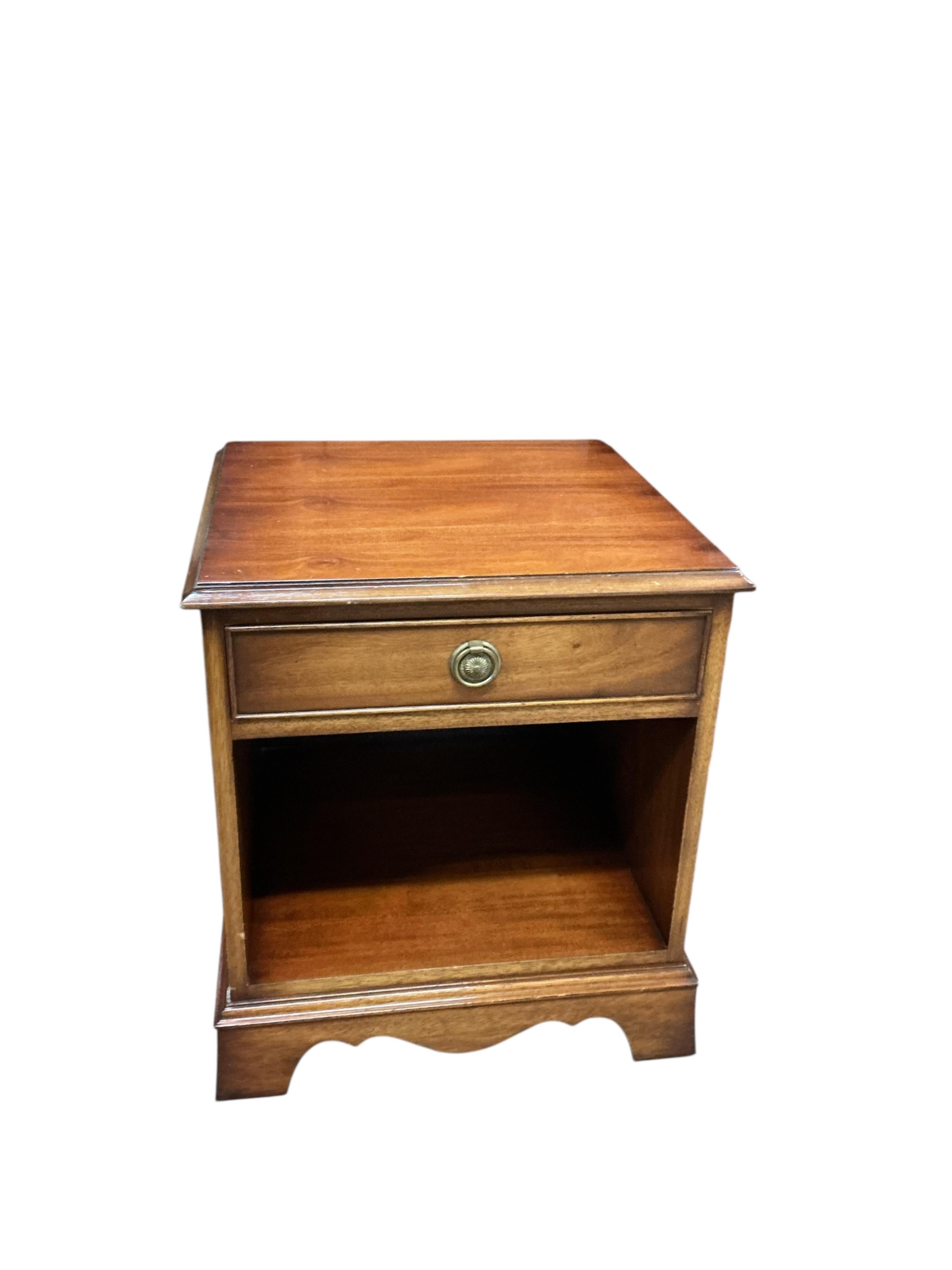 A pair of reproduction mahogany bedside cabinets, width 49cm, depth 46cm, height 55cm