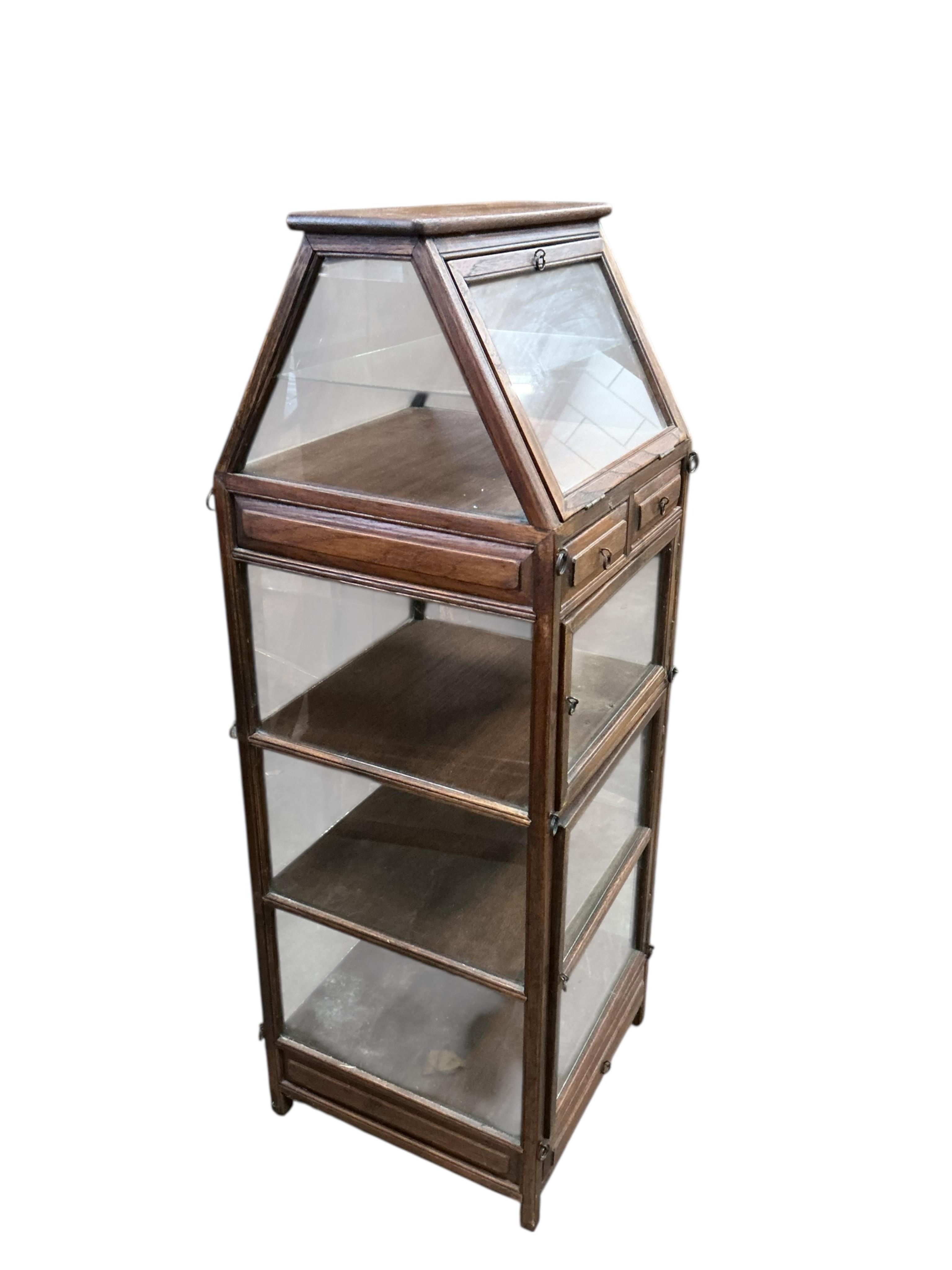 Lot 1403 , A small glazed hardwood display cabinet, width 38cm, depth 33cm, height 97cm