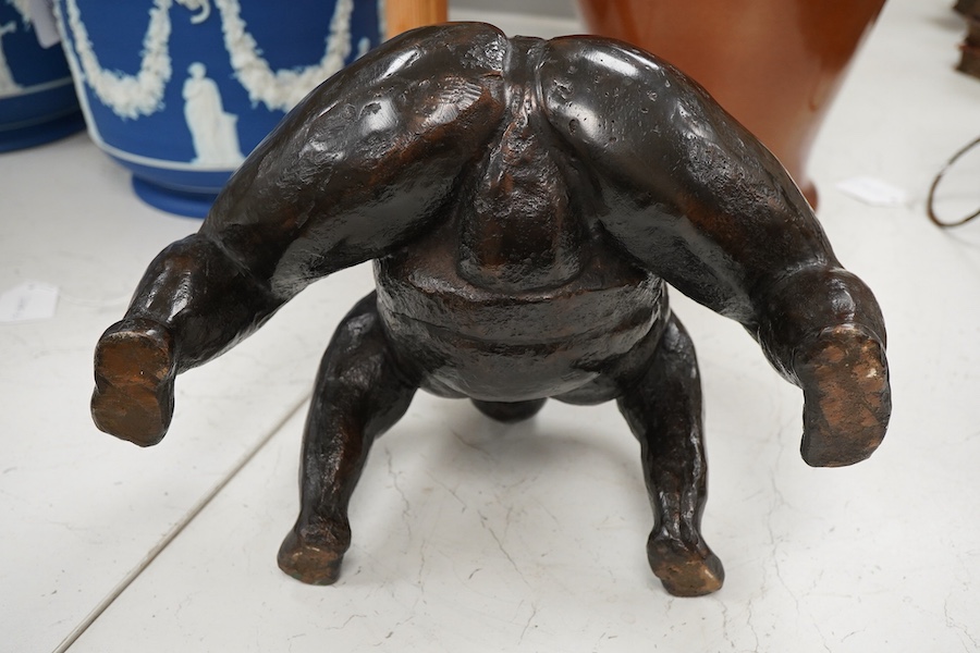 A contemporary heavy bronze figure of a sumo wrester, unsigned, 31cm wide