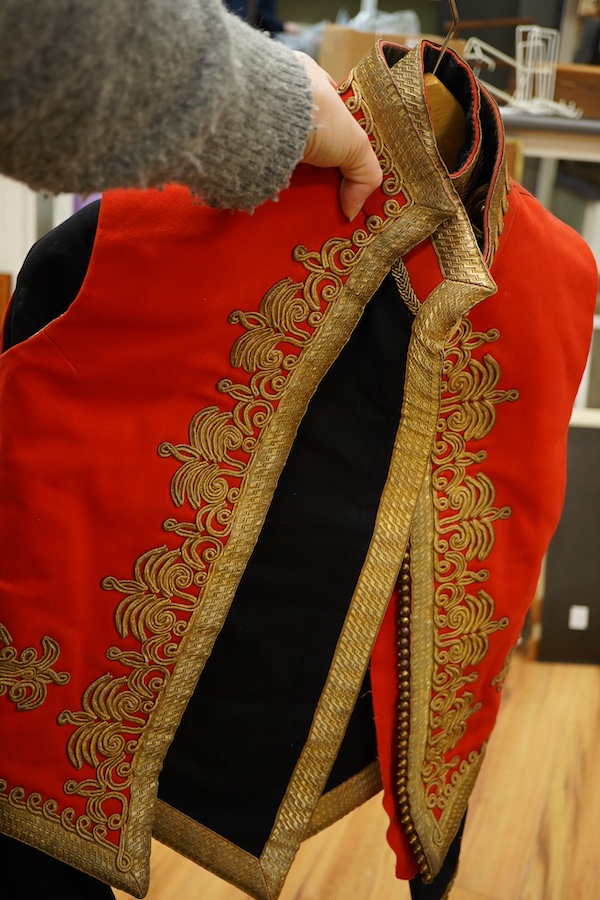 Lot 43 , Four 20th century military jackets, two waistcoats and a pair of formal trousers, relating to the Shoolbred family, including; an officer’s Service Dress Uniform jacket with applied medal ribbons manufactured by J.G. Plu