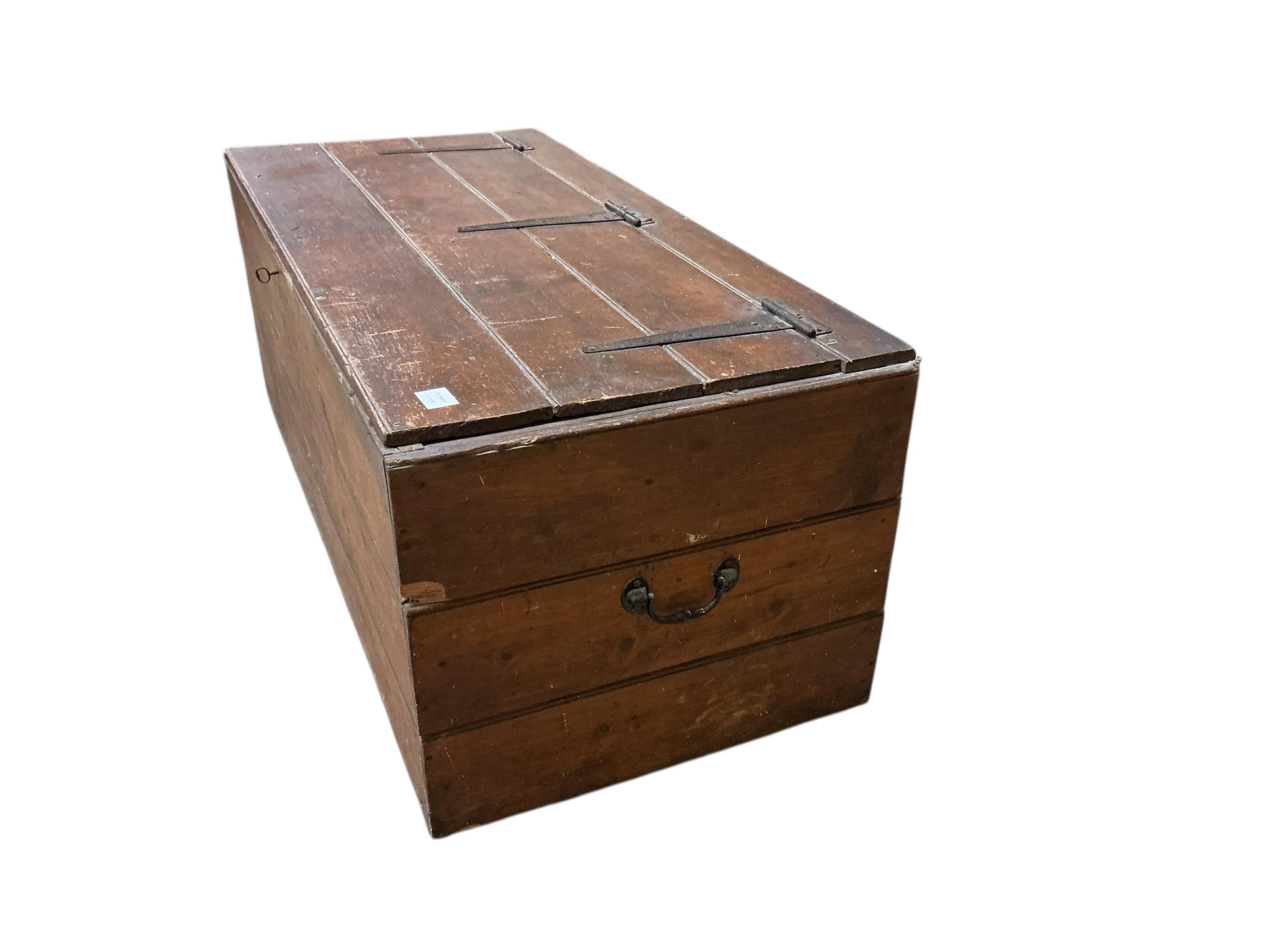 Lot 1234 , A large Victorian tongue and groove panelled pine trunk, width 126cm, depth 60cm, height 52cm