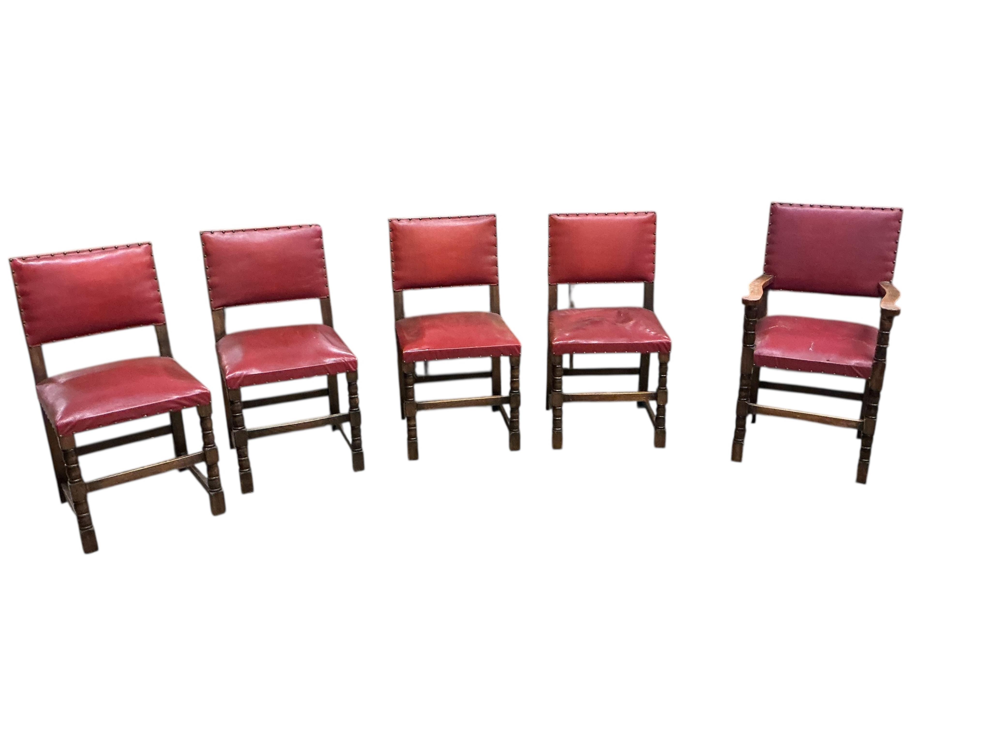 Lot 154 , An 18th century style oak refectory dining table, width 143cm, depth 70cm, height 71cm together with five chairs