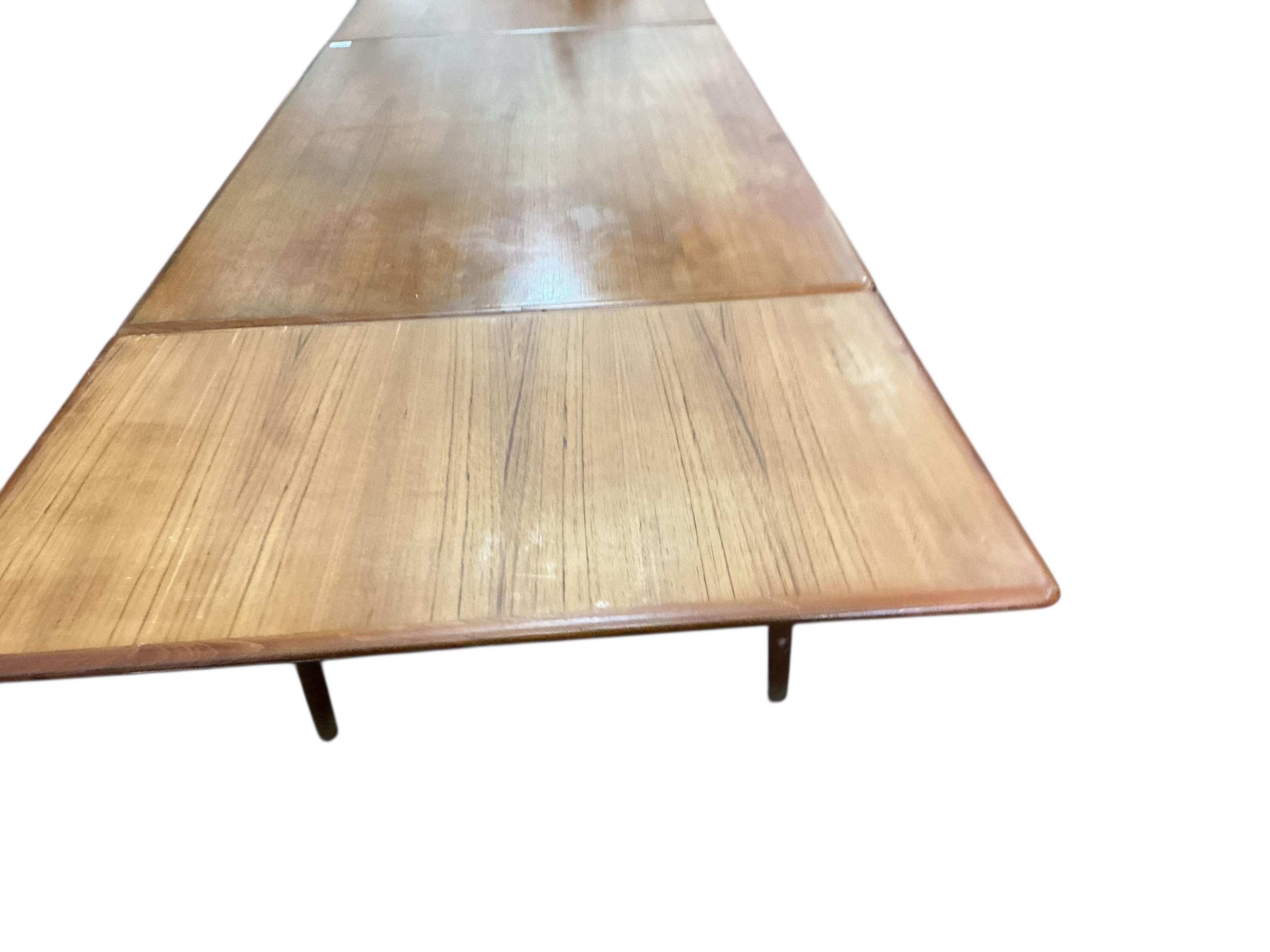 Lot 214 , A mid century Danish teak draw leaf dining table, extended 235cm, width 133cm, depth 85cm, height 75cm
