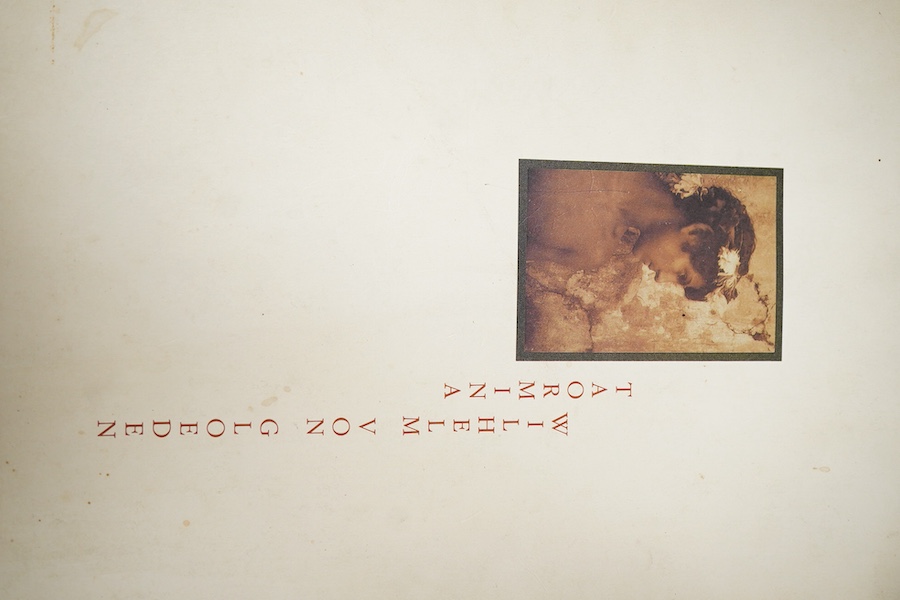 ° Taormiha, Wilhelm von Gloeden 1986, first US edition. Twelvetress Press. Hardcover, dustjacket, unpaginated. First printing of 5000 copies. Text by Roland Barthes. 80 duo-tone plates of male nudes.