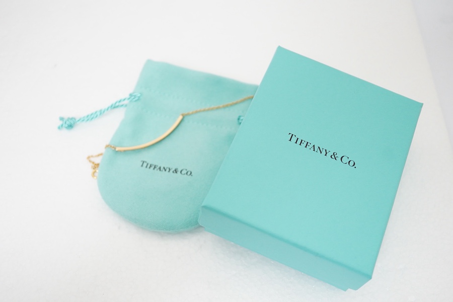 Tiffany & Co., a gold and diamond bracelet, 'Atlas', set on a plaque with openwork Roman numerals spaced by brilliant-cut diamonds totalling approximately 0.05 carats, to a chain bracelet, in 18ct gold, length 16.5cm, signed Tiffany & Co., British hallmarks, gross weight approximately 4 grams, pouch and box stamped Tiffany & Co.
