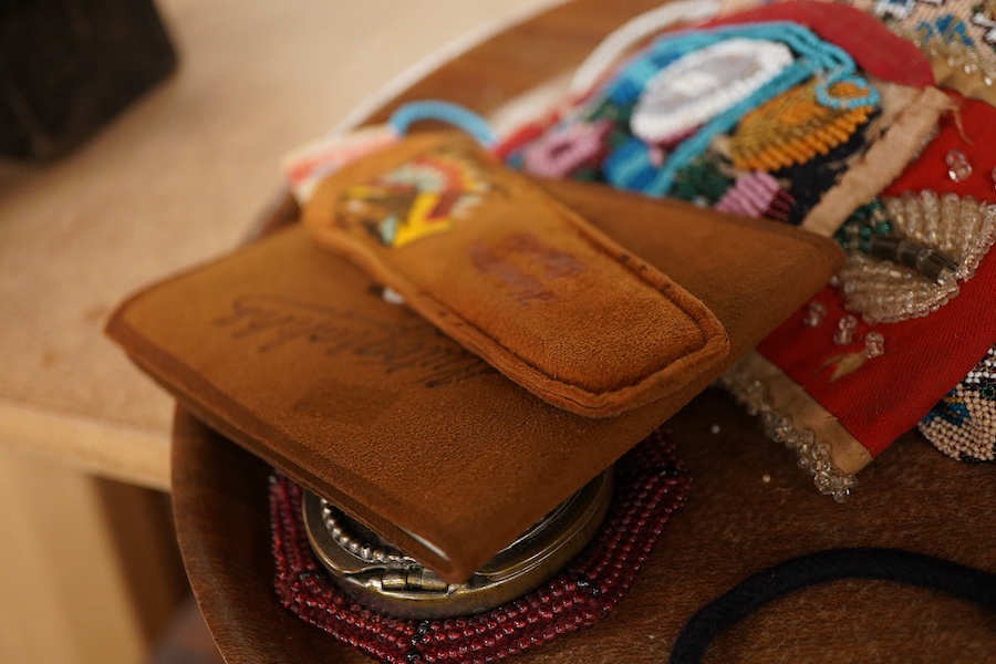 Lot 1494 , A pair of Victorian beadwork and suede slippers, other beadwork, shell and beadwork appliqué, etc., slippers 23cm (9)