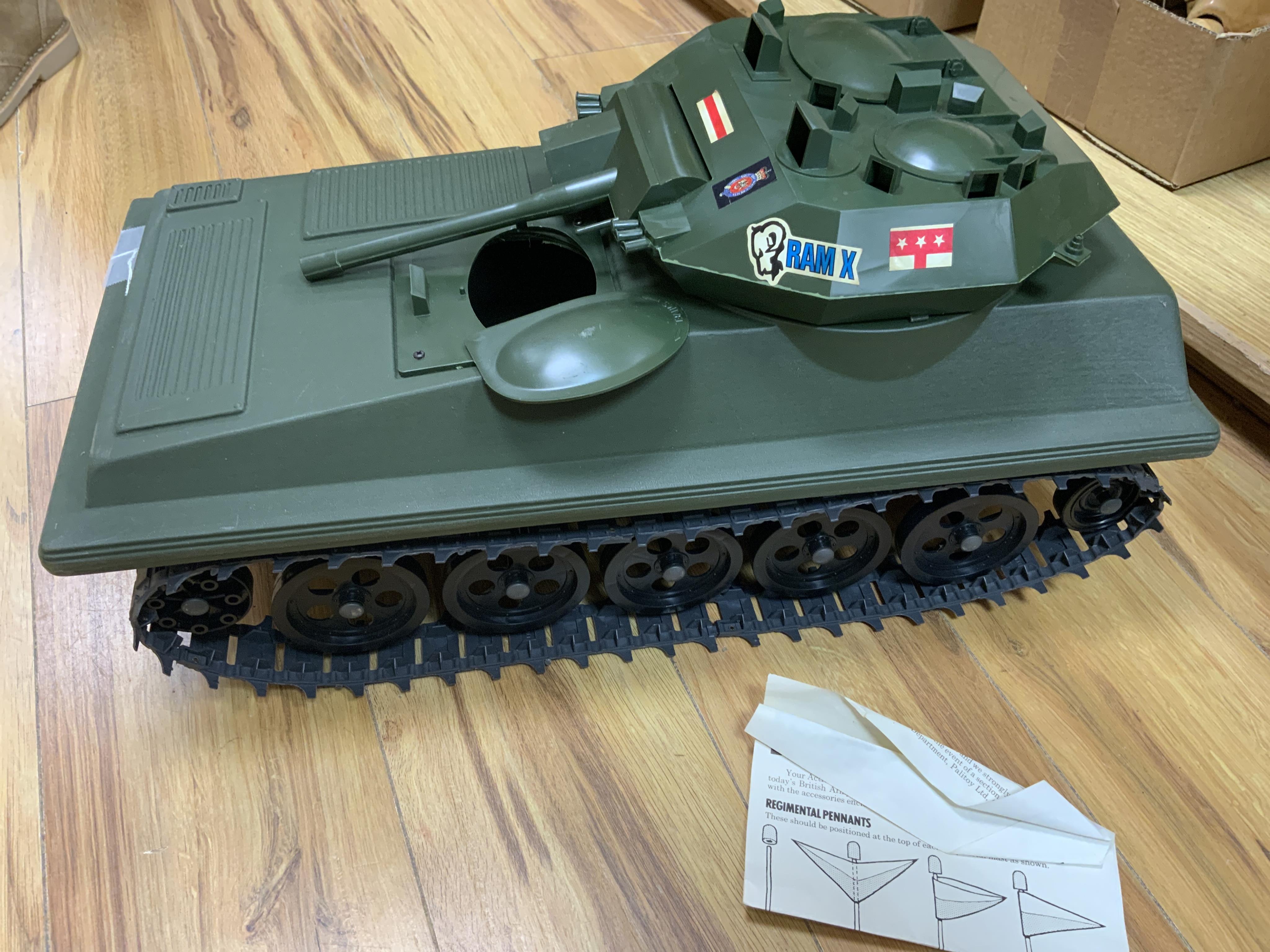 A collection of Action Man dolls and accessories, including; three dolls (a.f.), together with a good selection of clothing, uniforms and accessories, plus two boxed vehicles; a Cherilea Battle Force German army Motorcycle & Side-car, and a Palitoy Scorpion Tank, plus two unboxed military vehicles; a Jeep and an armoured car