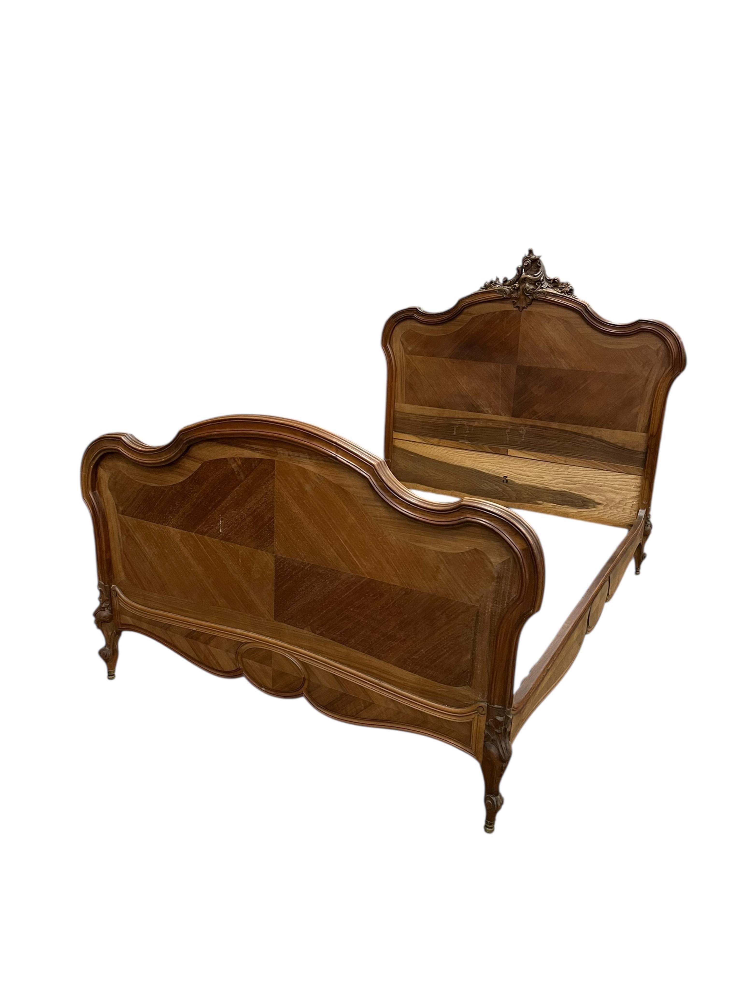 Lot 260 , A French Louis XV style carved walnut bed frame, width 157cm, length 207cm, height 161cm