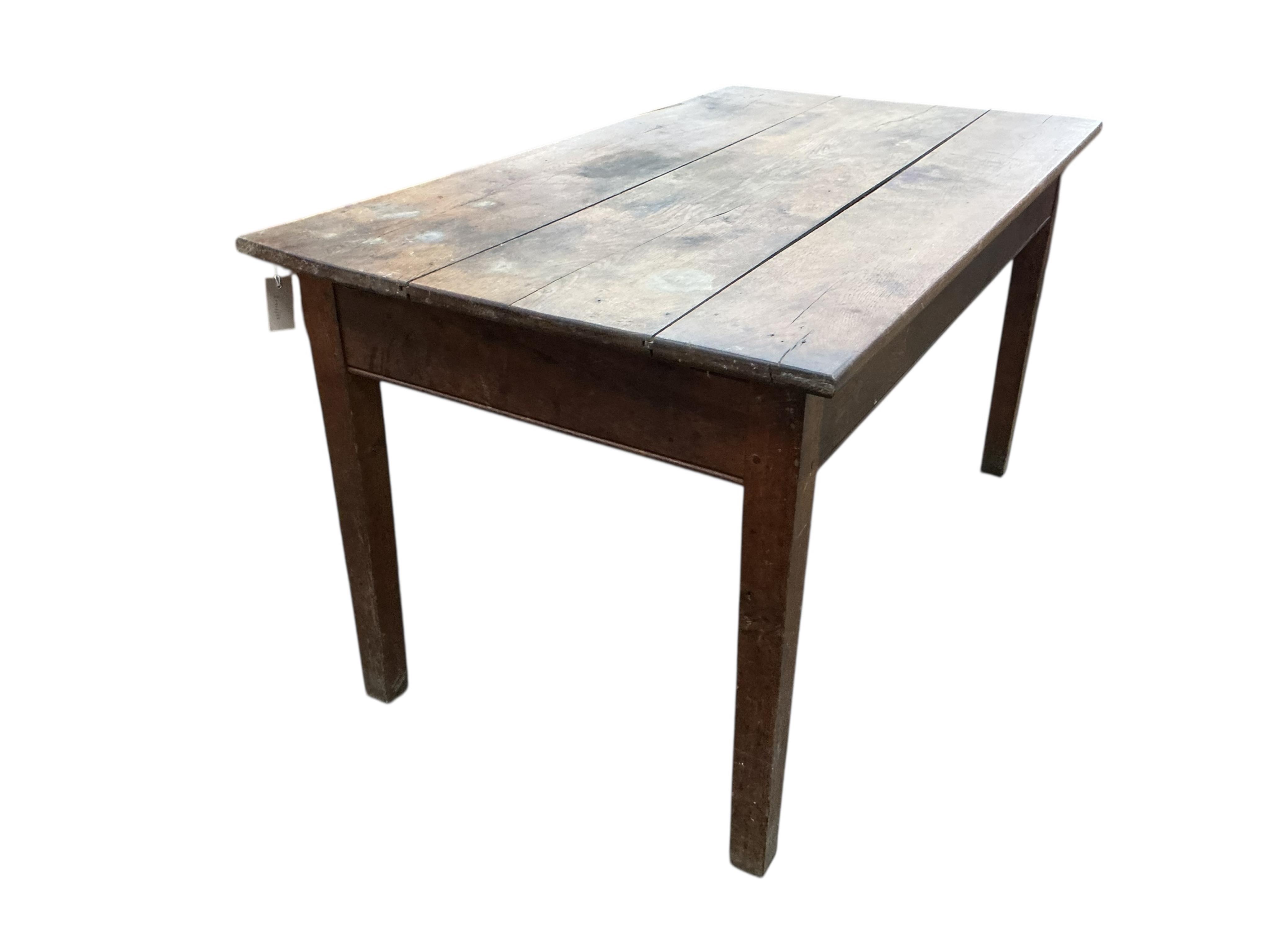 A French oak farmhouse kitchen table, width 141cm, depth 80cm, height 76cm