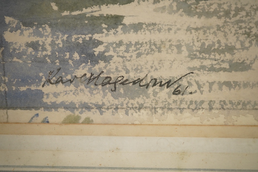 Carl Nagerton, ‘The River at Brentford’, signed, gallery label verso, watercolour, together with J. C. Middleton, rocky coastal view, signed, largest 27 x 42cm