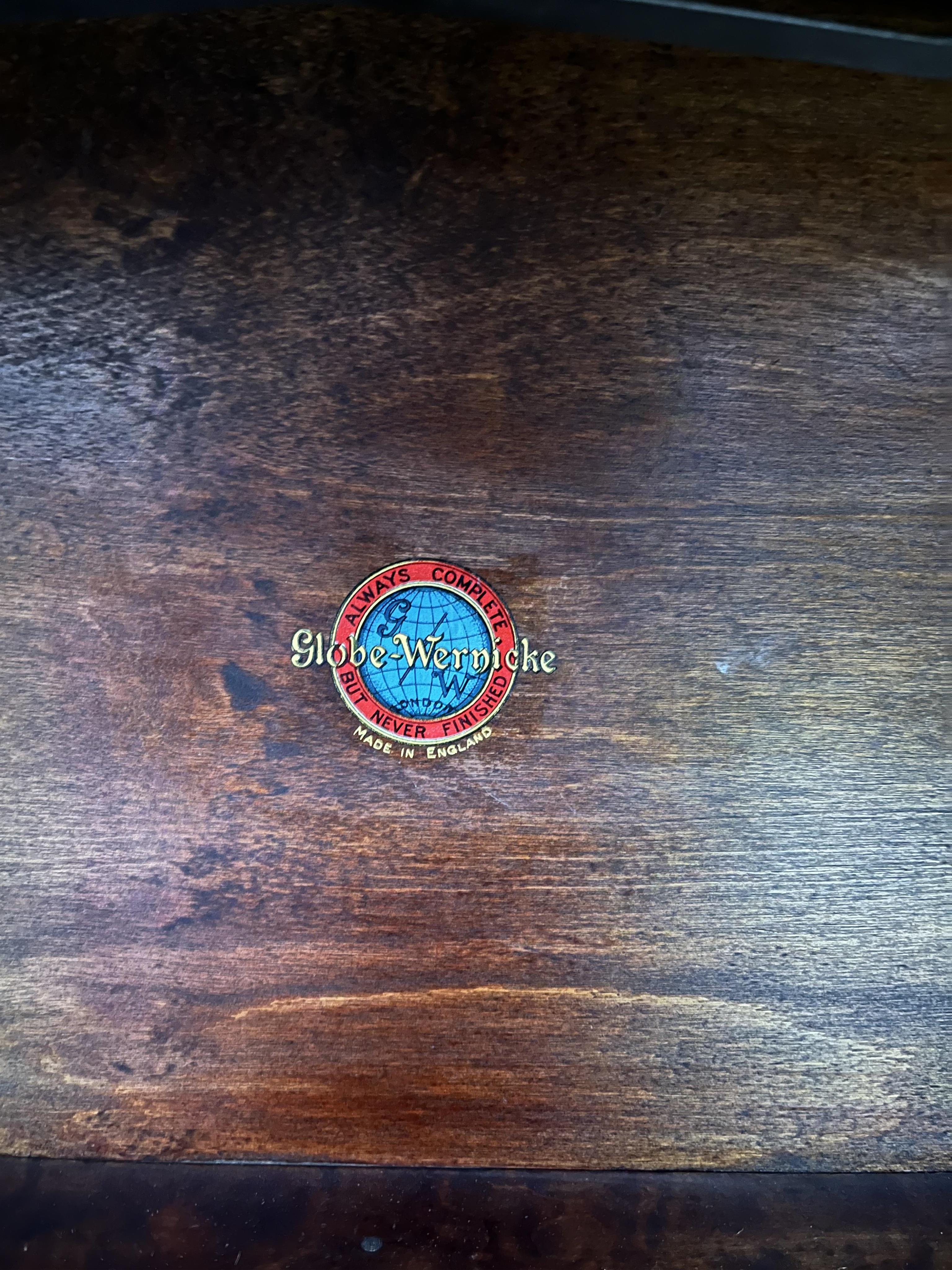 Lot 280 , Two section Globe Wernicke mahogany and lead lit bookcase, width 87cm, depth 31cm, height 84cm