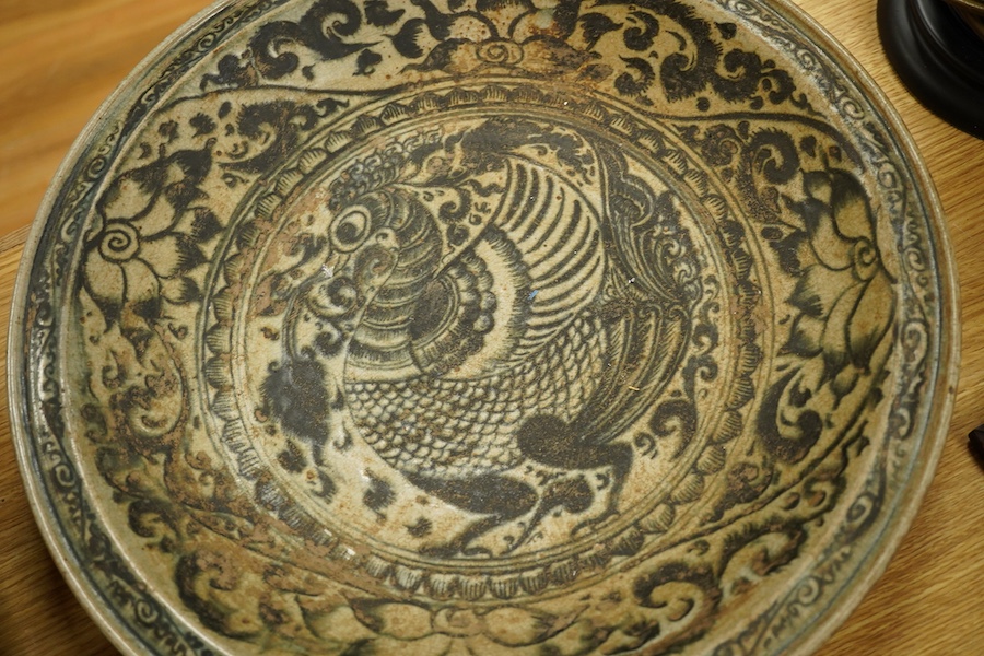 Lot 444 , Three Thai Sukhothai style phoenix dishes, largest 37cm in diameter