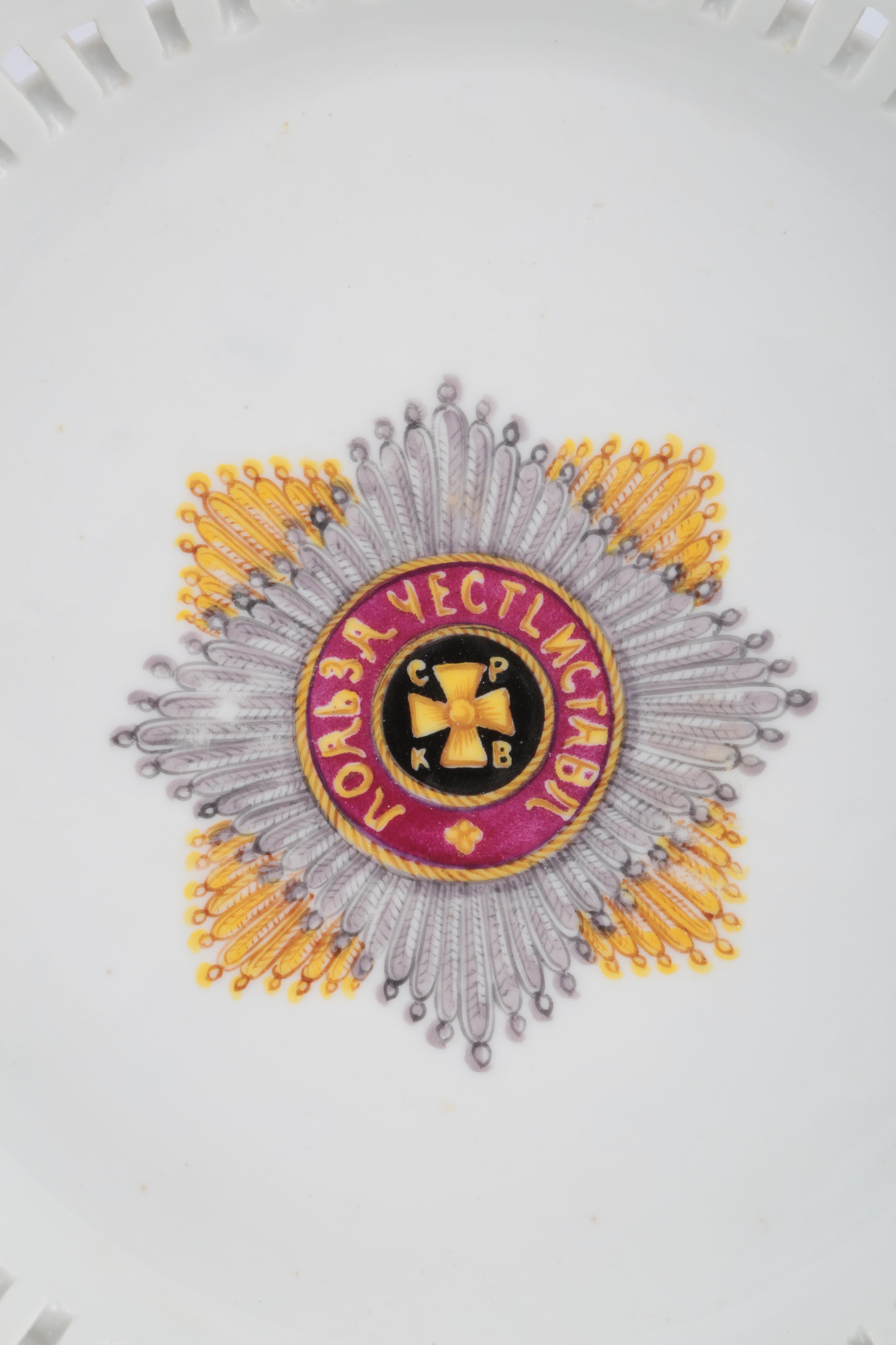 Lot 12 , A Russian porcelain circular basket from the Service of the Order of St Vladimir, Popov factory replacement