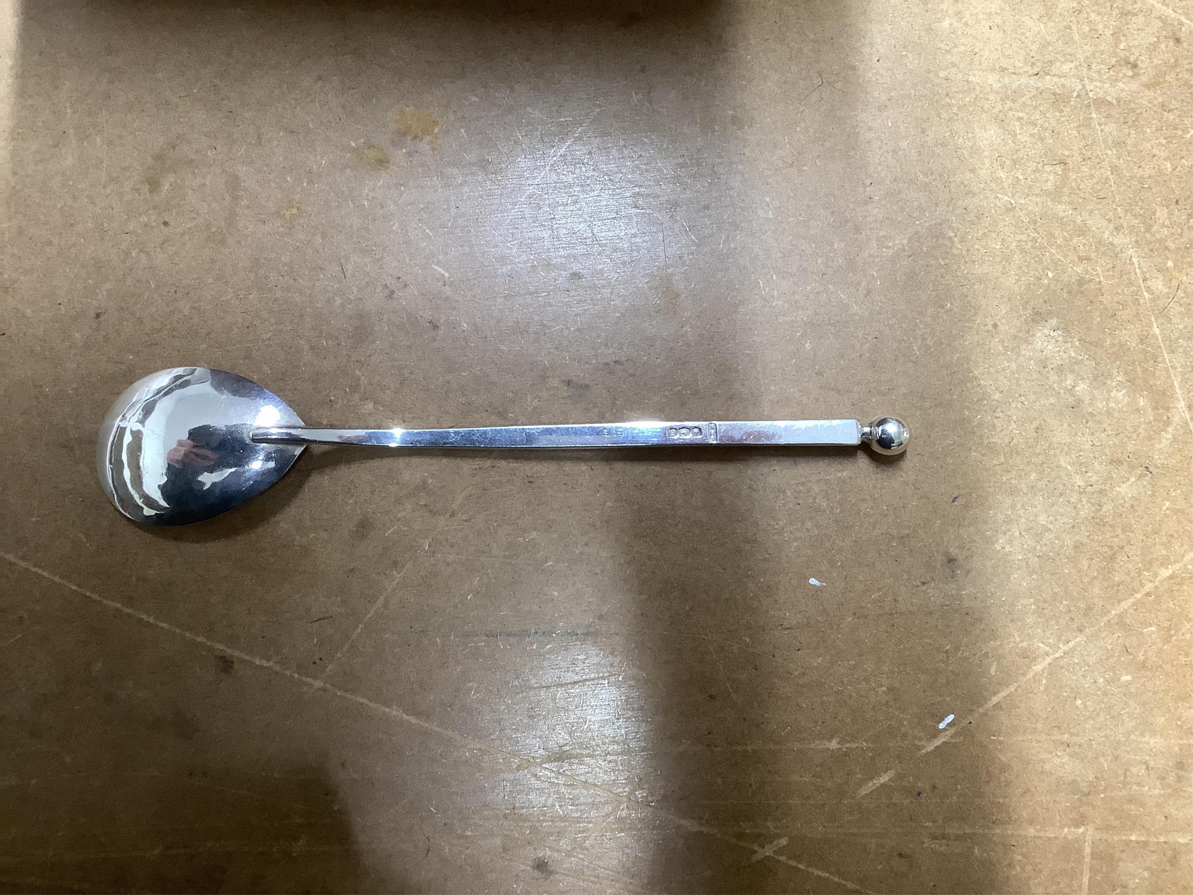 Lot 843 , A collection of assorted silver flatware including teaspoons, butter knife, forks etc, and a long spoon by Joyce Rosemary Himsworth, approx. 22oz.