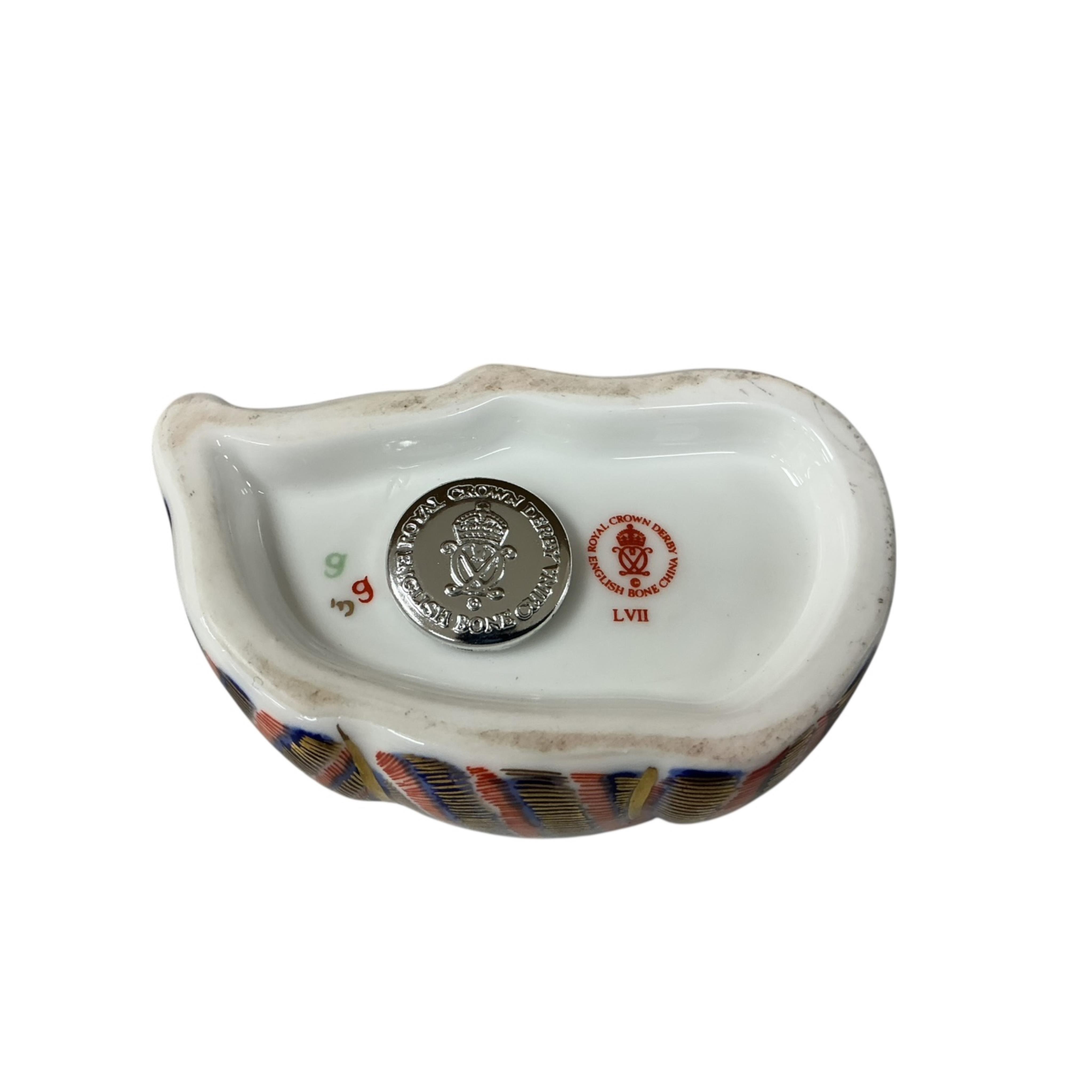 Six pieces of Royal Crown Derby Imari pattern porcelain to include a cat paperweight, twin handled dish and a pot and cover, together with a Meissen dragon pin dish and a Herend Chinese bouquet rust footed bowl, largest 15cm wide