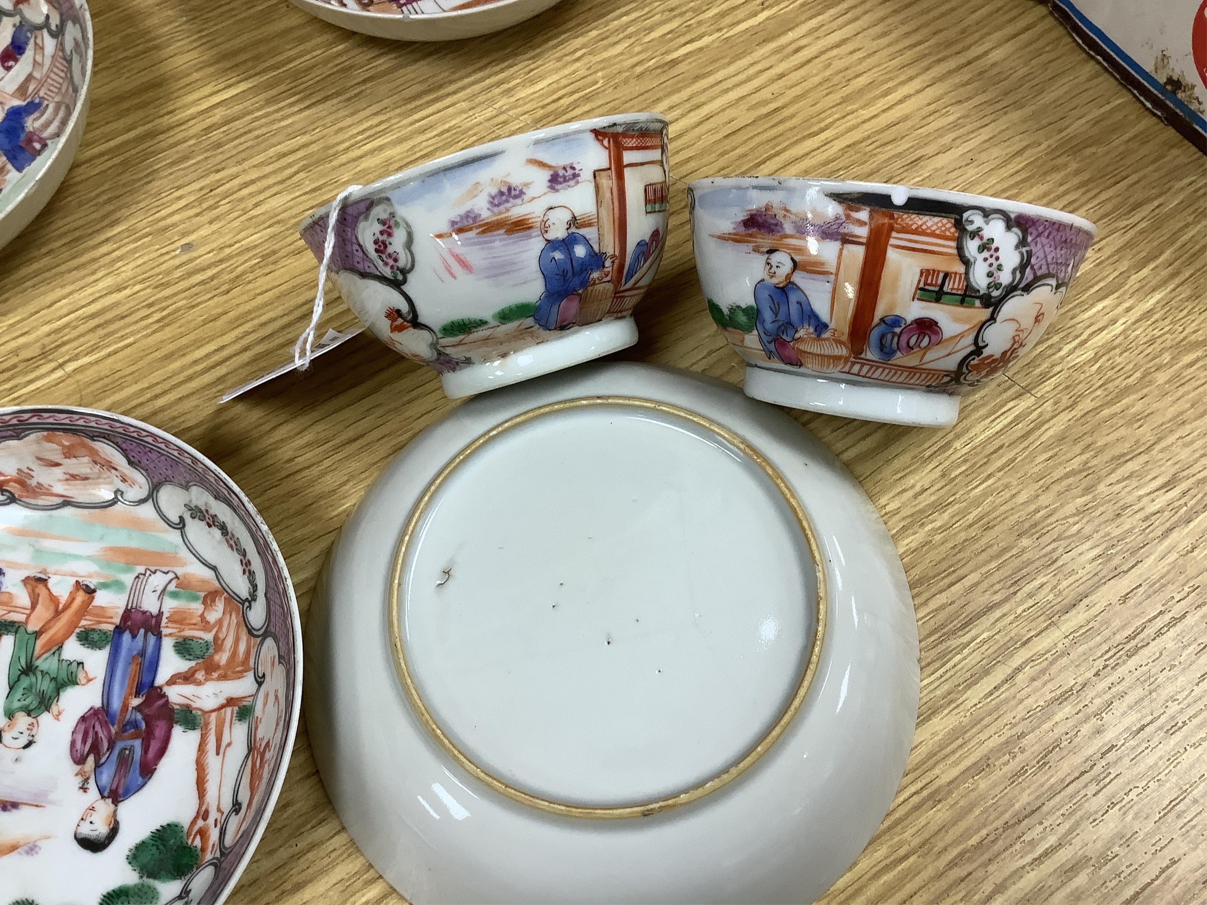 Four late 18th century Chinese famille rose mandarin pattern tea bowls and saucers