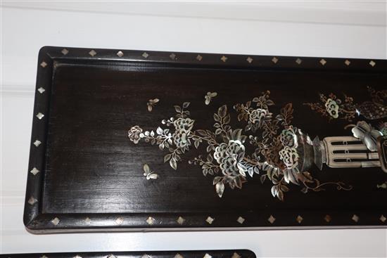 A pair of Chinese hongmu and mother of pearl inlaid panels, early 20th century