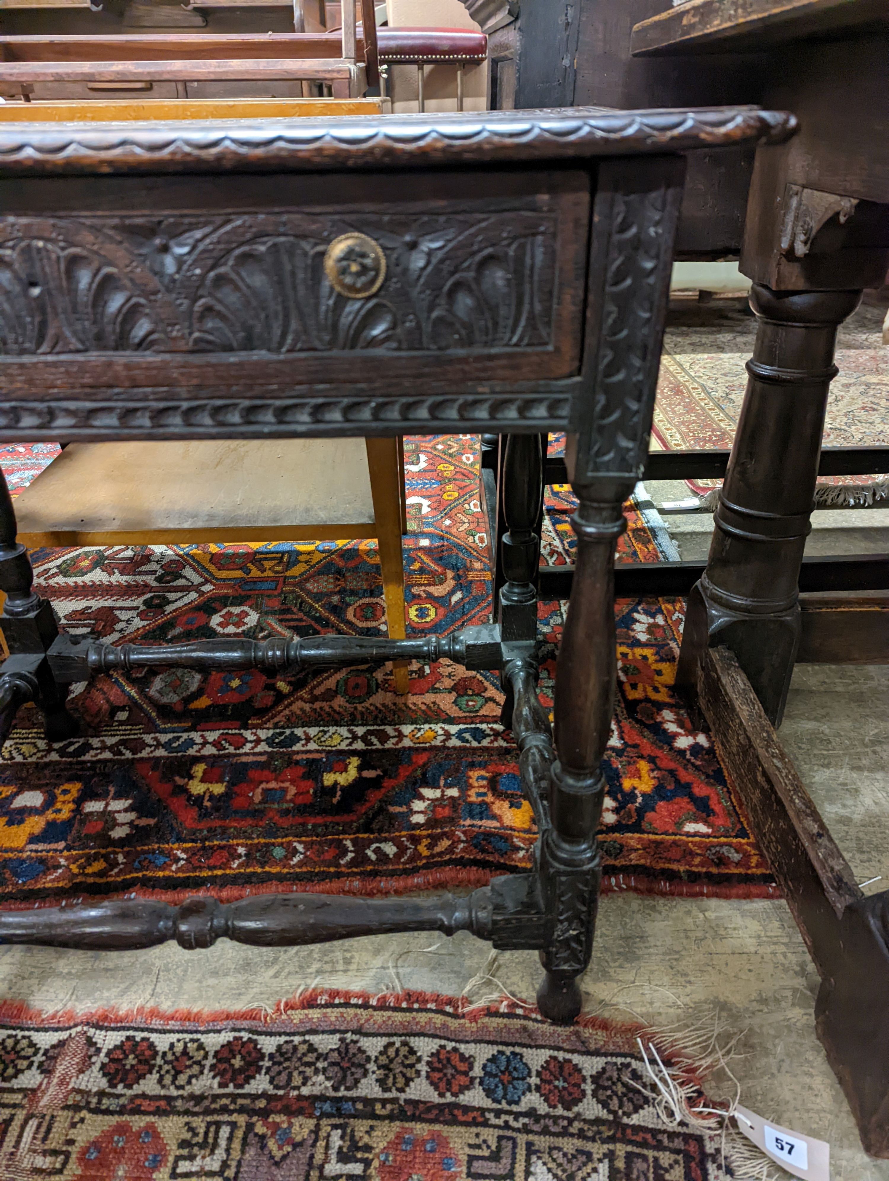 Lot 56 , An 18th century carved oak side table, width 71cm, depth 47cm, height 67cm