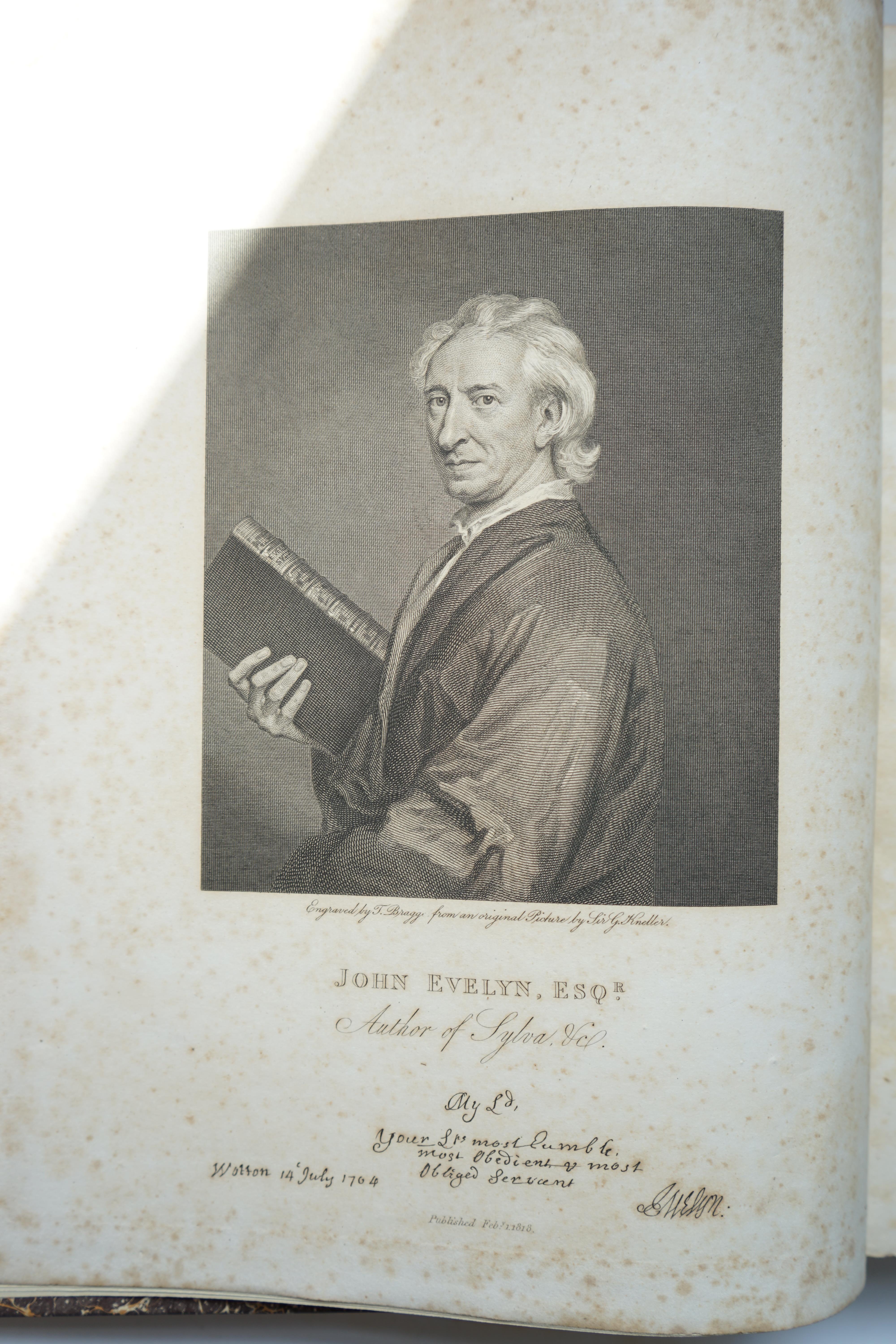 Lot 1297 , Evelyn , John - Memoirs Illustrative of the Life and Writings of John Evelyn, Esq. F.R.S., edited by William Bray, 2 Vols, 2nd edition, large paper copy, rebound quarter calf with renewed endpapers, with 12 engraved plat