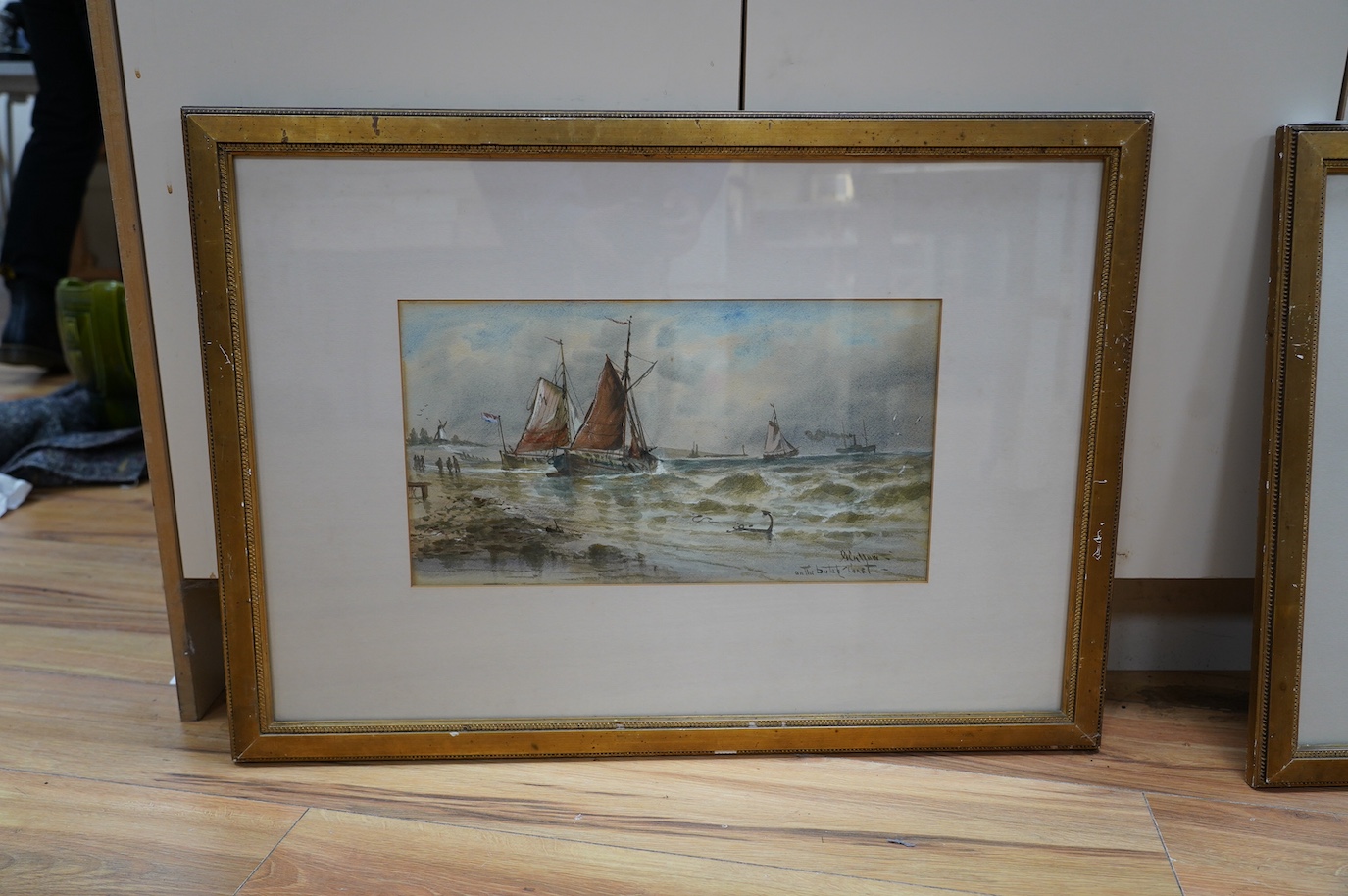 John Callow O.W.S. (1822-1878), pair of watercolours, ‘Morning on the Thames’ and ‘Dutch Coast’, 24 x 46cm. Condition - fair to good