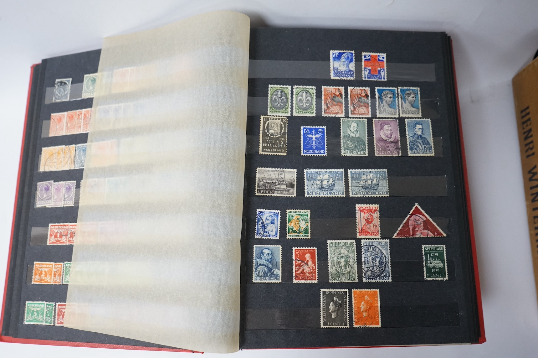 Four albums of stamps each: Holland, New Zealand, Borneo etc (4). Condition - mostly stamp marked.