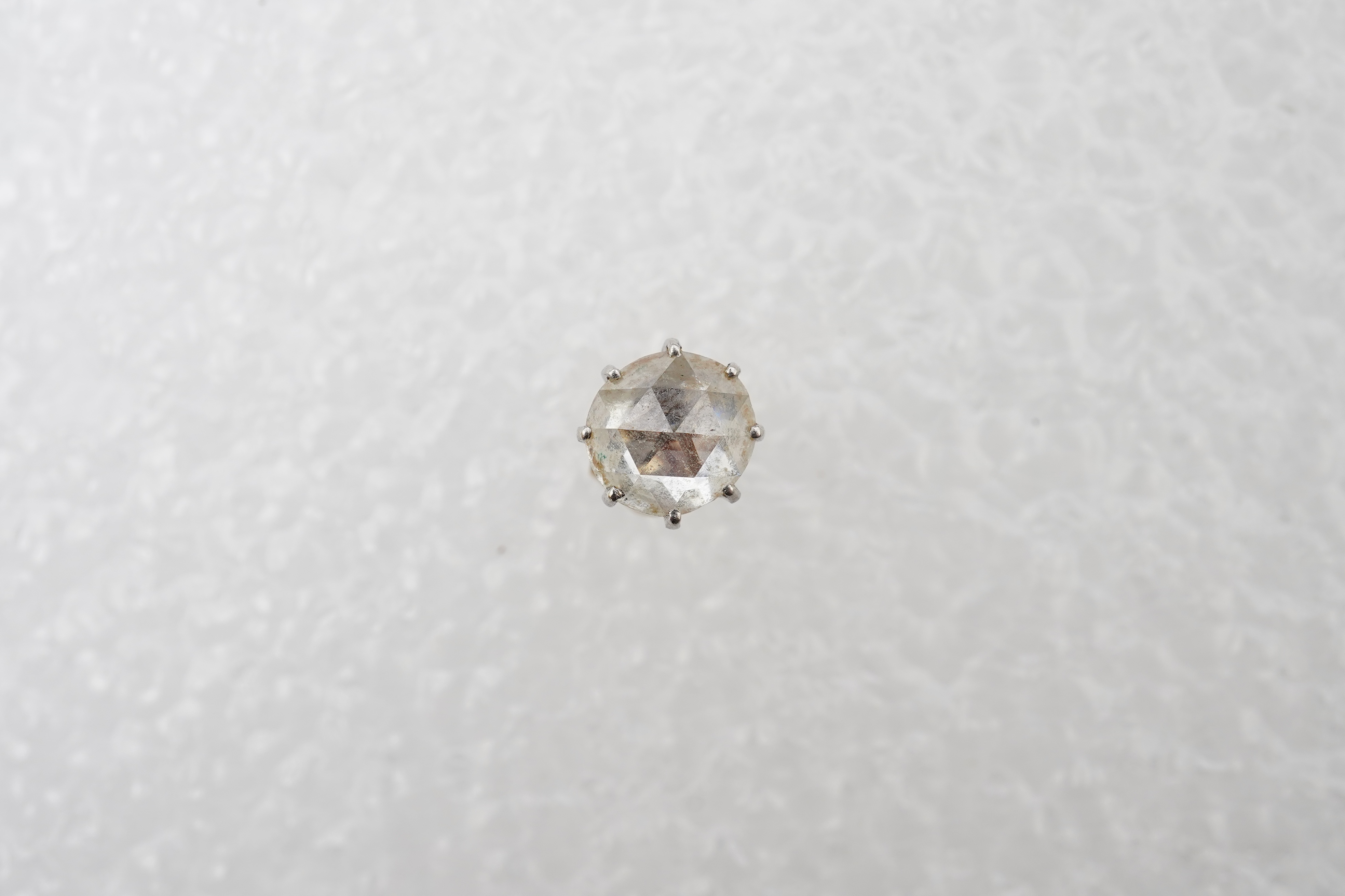 A single diamond stud earring, early 20th century, claw-set with a rose-cut diamond measuring approximately 7 x 6.5mm, mounted in silver and gold, post fitting