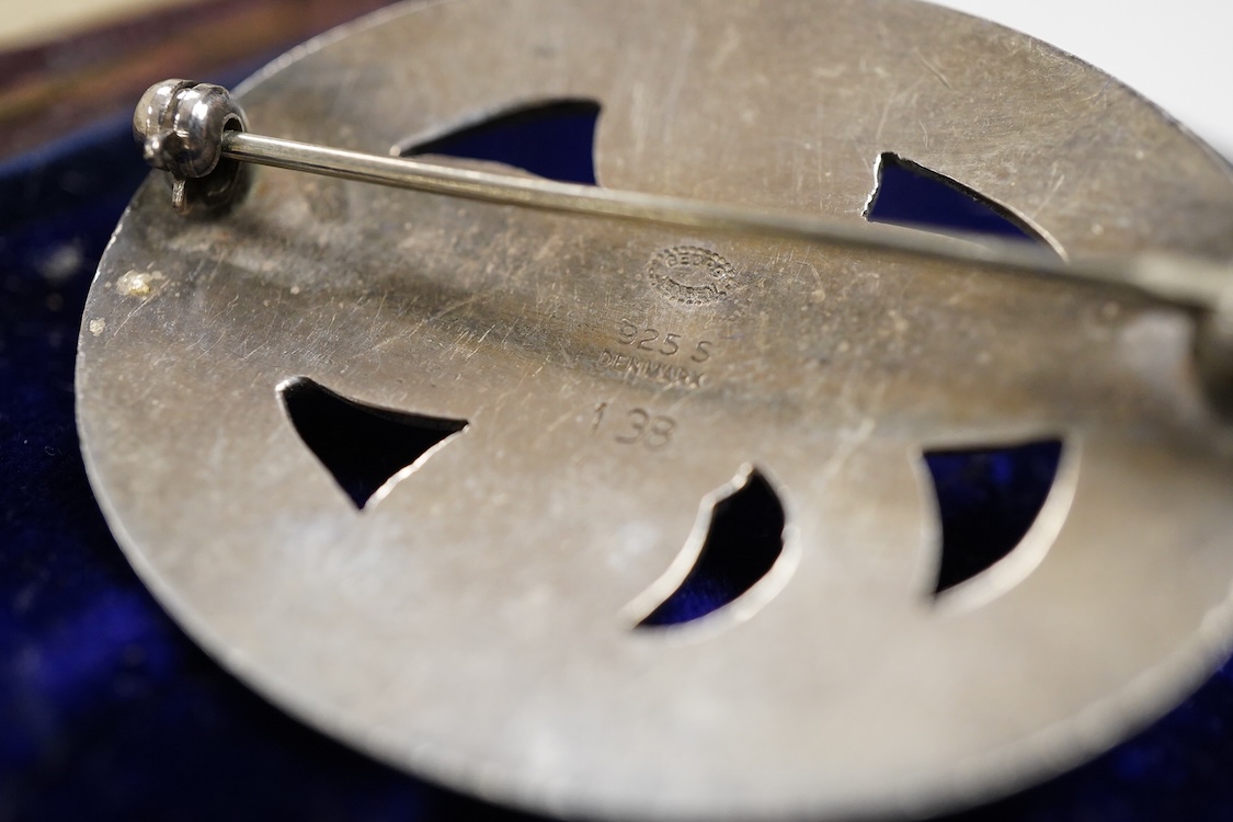 Lot 1904 , A Georg Jensen 925S and single stone cabochon garnet set oval brooch, design no. 138, 38mm.