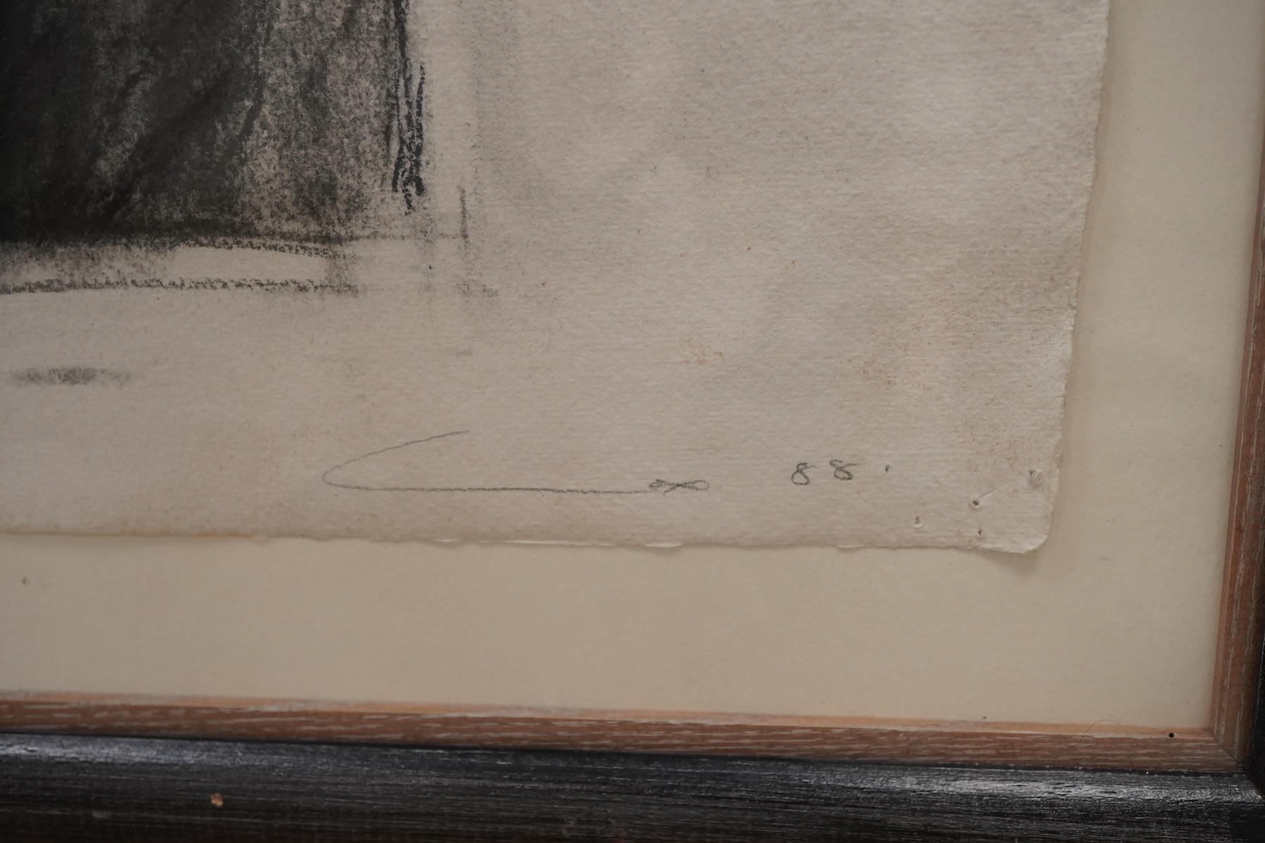 Stephen Cox (b.1946), Abstract studies for a sculpture, signed and dated '88, pair of charcoal sketches on paper, for the Ganapathi and Devi series, 38 x 30cm