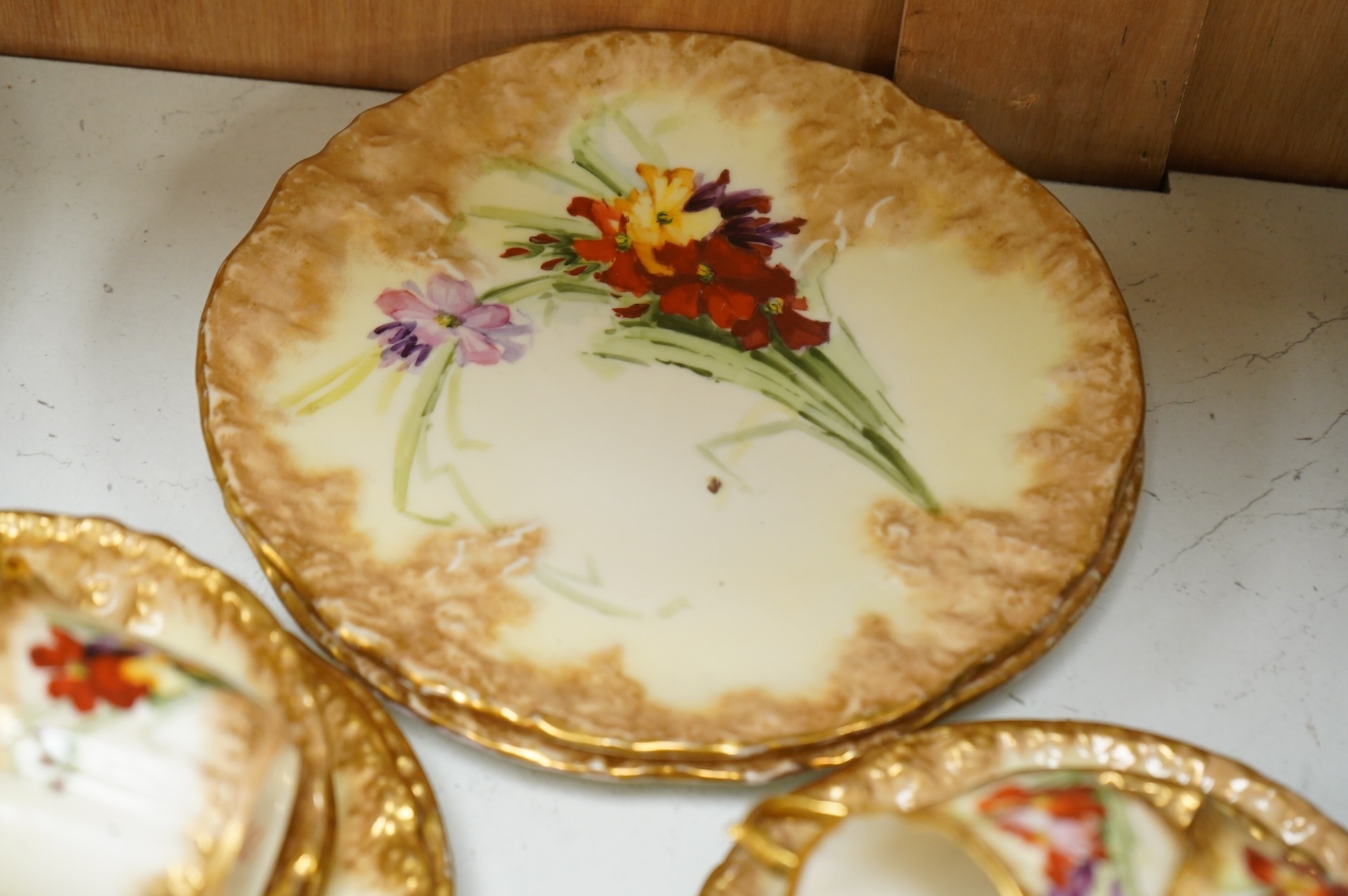 A ‘Nautilus’ porcelain floral and gilt decorated tea service, sandwich plates 23cm diameter.