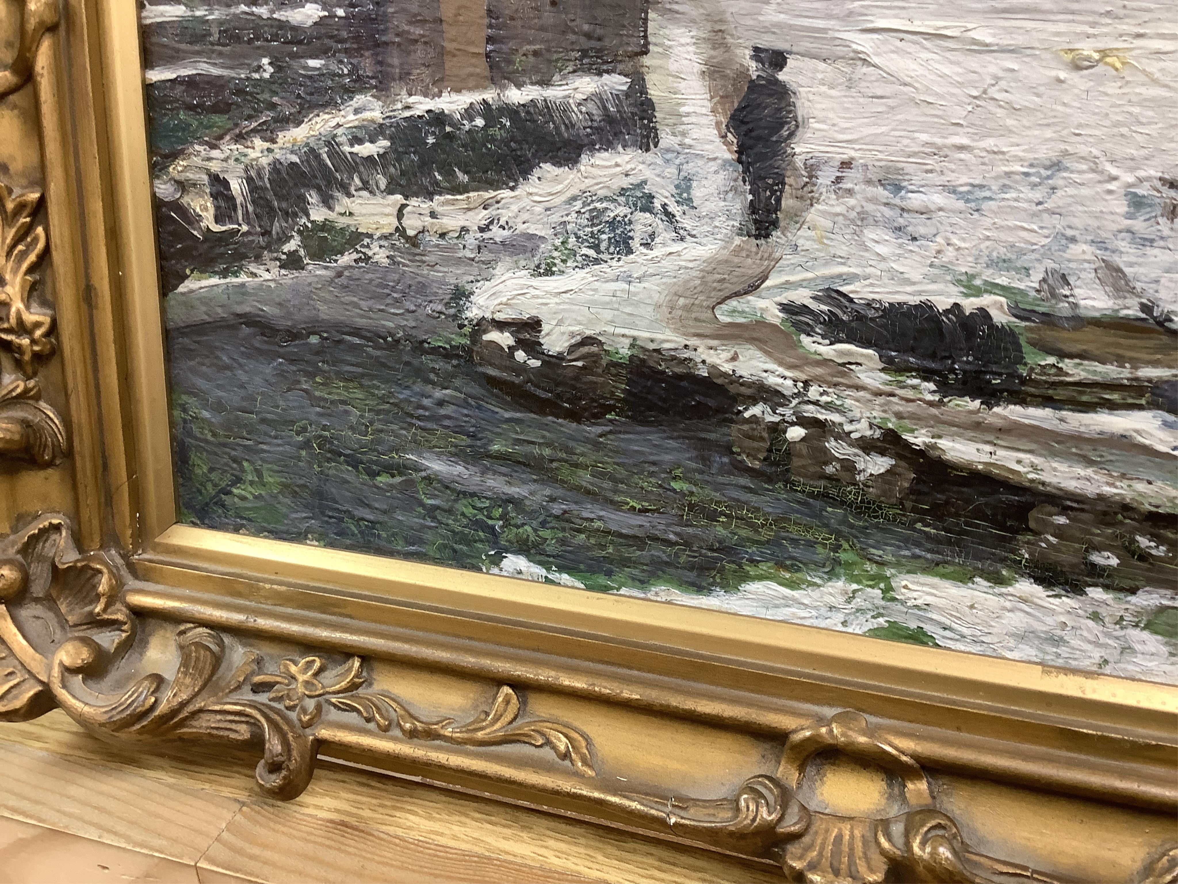 Lot 731 , 20th century, 'Packhorse bridge and Alms houses of Linton, near Grasington', oil on board, indistinctly signed lower right, 23 x 33cm