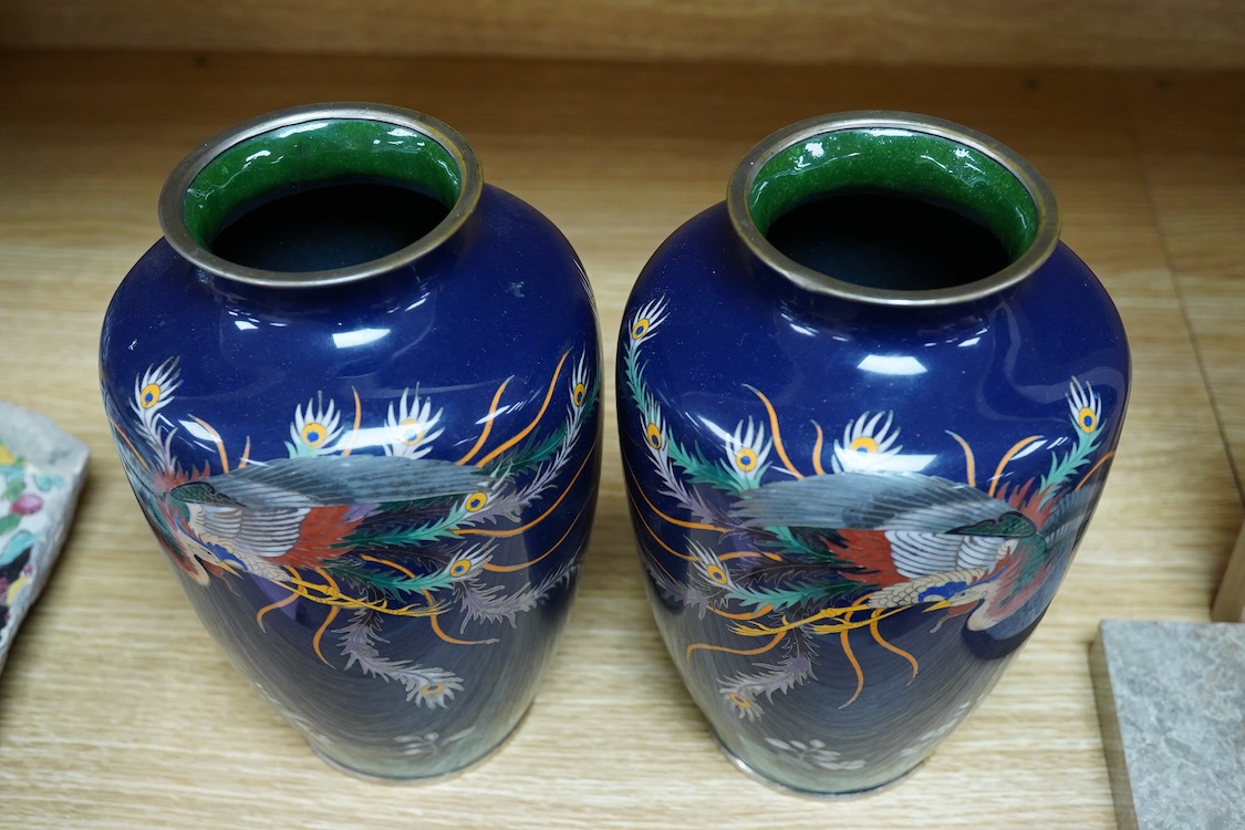 Lot 2355 , A pair of Japanese silver wirework cloisonné ‘phoenix’ vases, Meiji period (1868 - 1912), 18cm