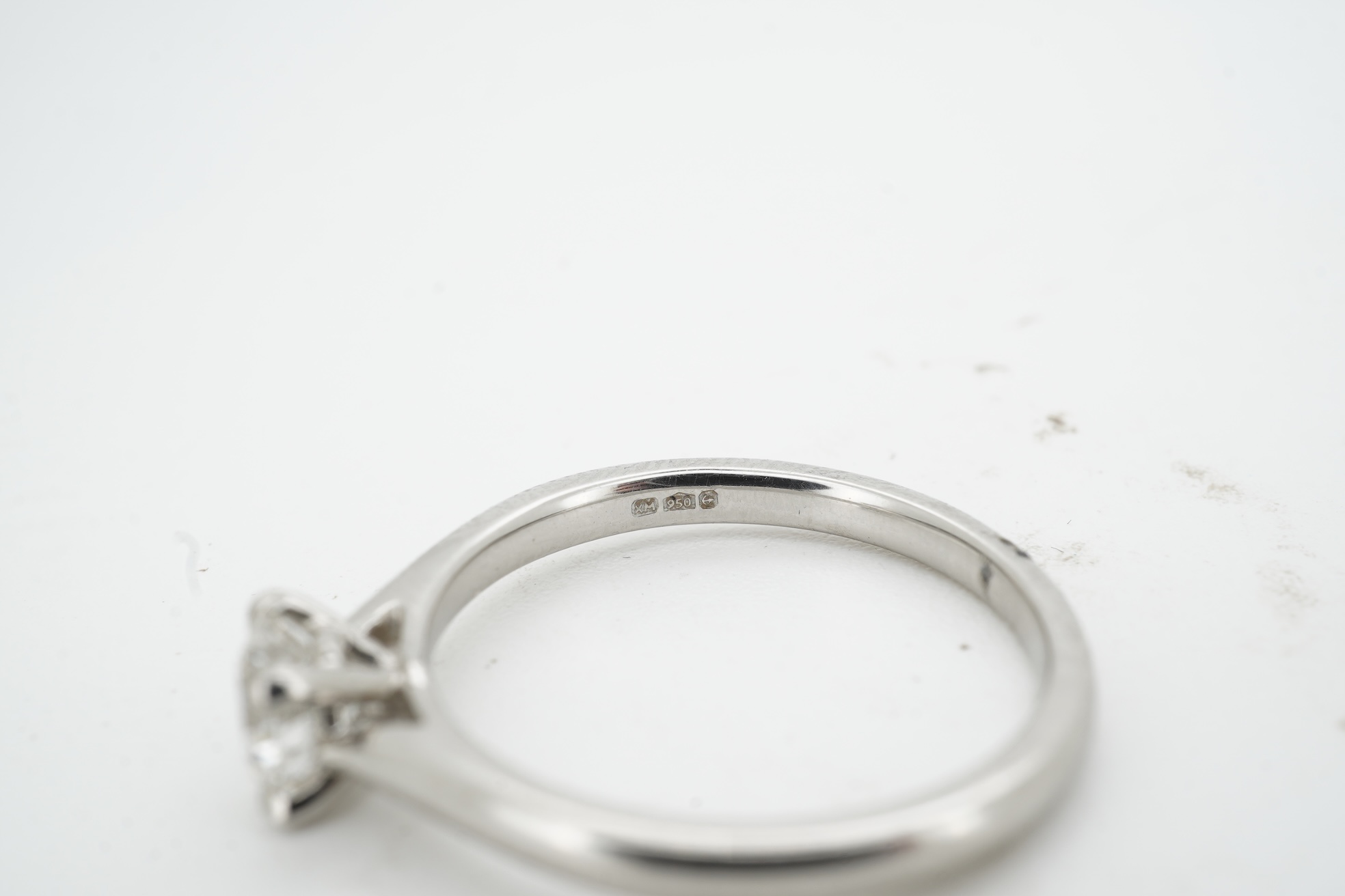Lot 919 , A diamond ring, claw-set with a brilliant-cut diamond weighing approximately 0.57 carats, mounted in platinum, size M, British hallmarks, gross weight approximately 3 grams