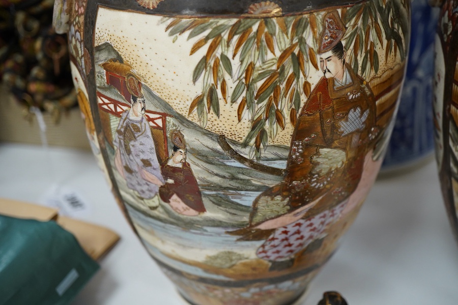 A pair of Japanese Satsuma pottery vases, 30cm high