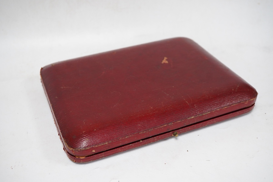 A cased pair of late Victorian silver spoons, the pierced terminals decorated with the busts of a lady and gentleman, James Dudley, London, 1898/1900, 19cm, 5.2oz.