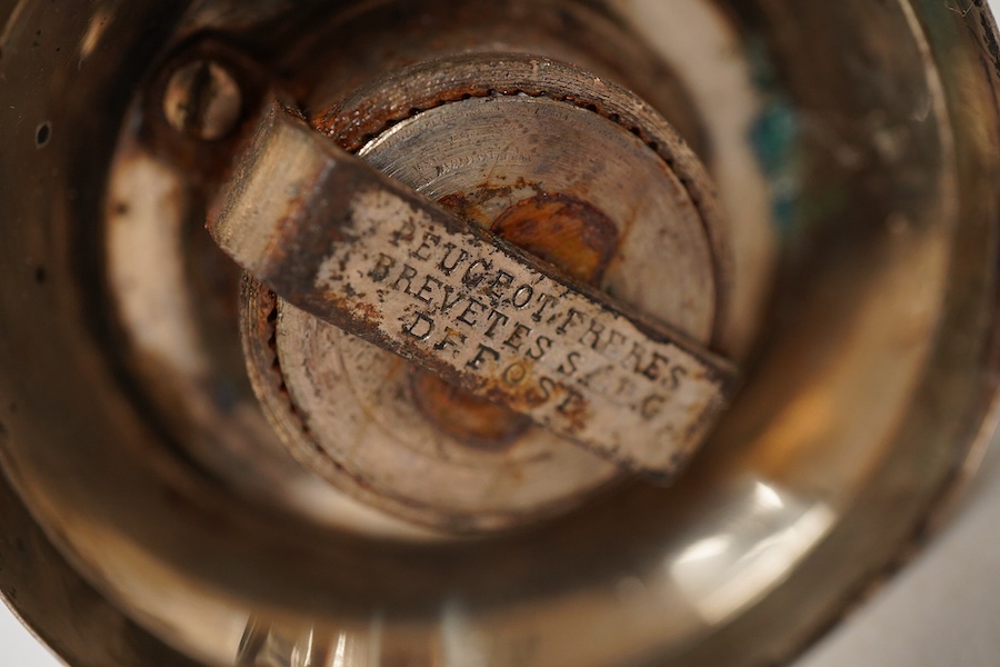 Lot 1849 , A Victorian silver mounted glass pepper mill, by Frederic Purnell, London, 1881, height 86mm.
