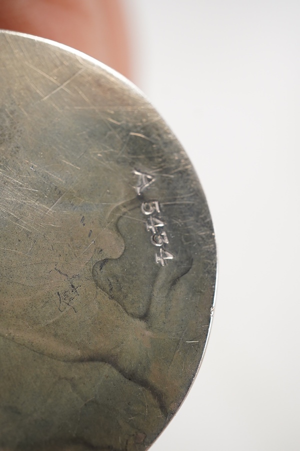 A set of four George V silver and tortoiseshell pique circular menu holders, by William Comyns, Birmingham, 1912/13, height 40mm.