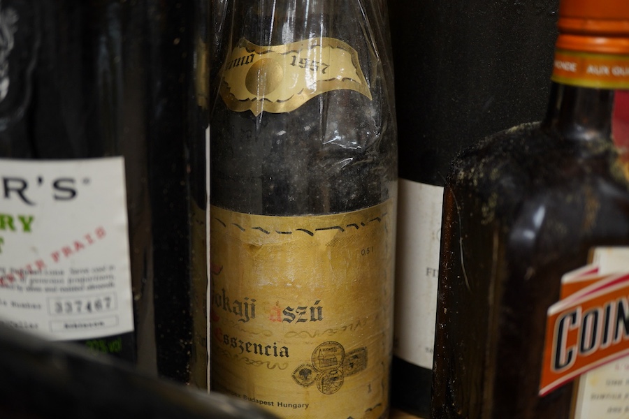 16 bottles mixed port, Cointreau, Tokaji and Metaxa, including four unlabelled bottles of port with Sotheby’s wine department labels, two bottles Taylors chip dry port, President Vinho Velho do Porto, 2 bottles tokaji 1957, etc.