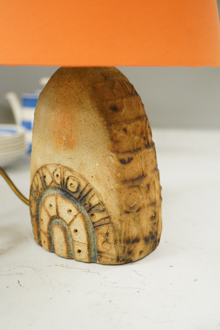 Lot 1311 , Bernard Rooke, a small studio pottery lamp with incised decoration and shade, 26cm high