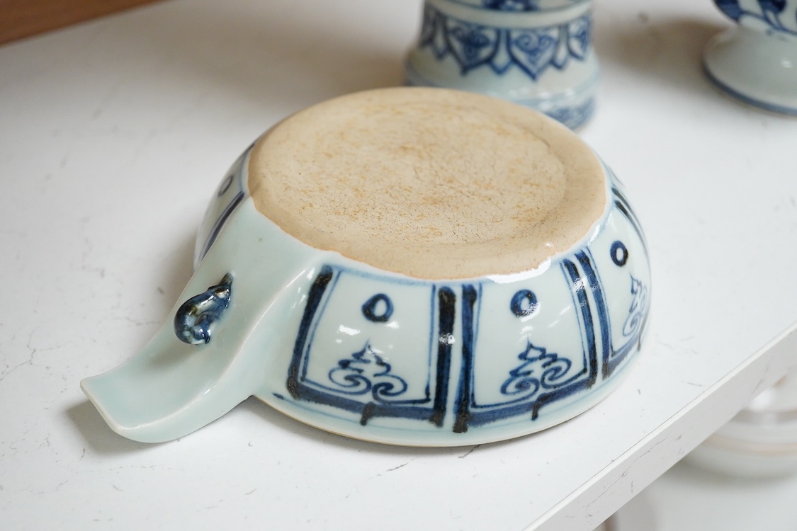 Lot 1261 , Three Chinese blue and white items: two vases and water bowl, tallest 27cm