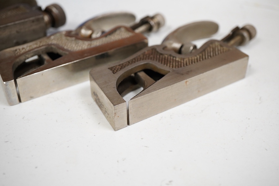 Lot 1041 , Four Preston nickel plated bullnose planes, including a 1 1/8” No.1355 bullnose with waisted top