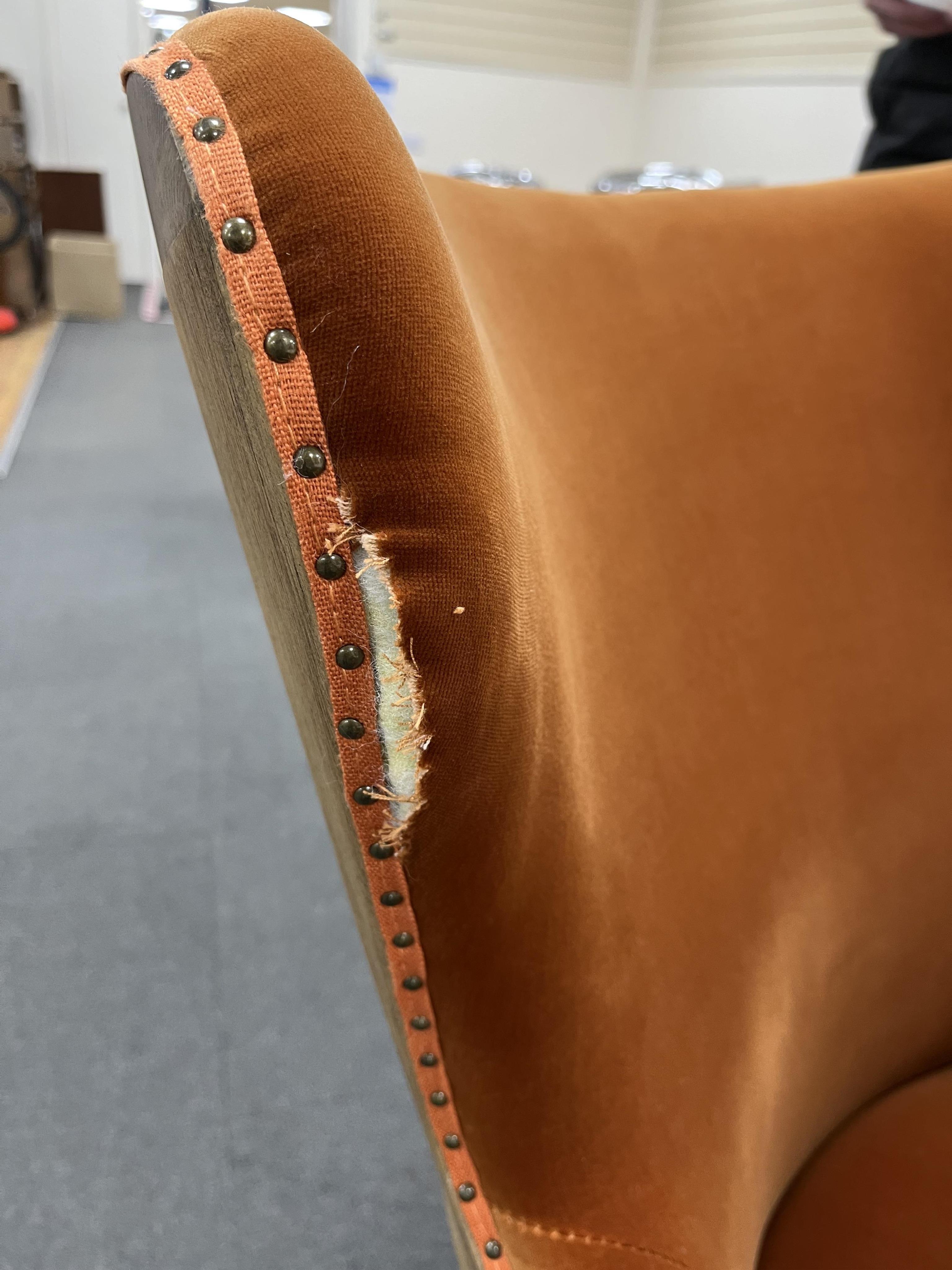 Lot 3366 , Four contemporary OKA rust velvet upholstered wing armchairs, width 66cm, depth 65cm, height 98cm