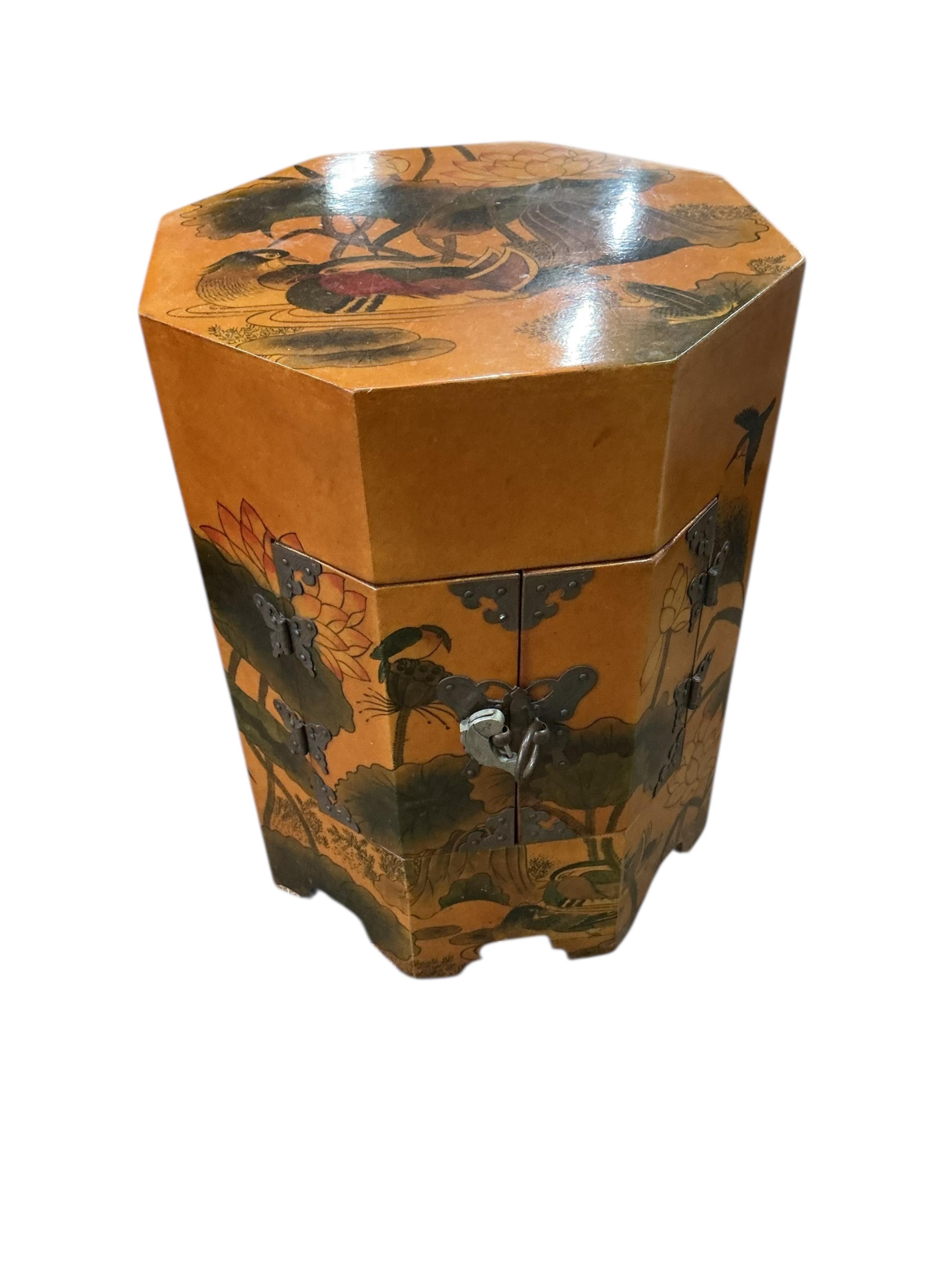 Lot 1402 , A pair of Chinese octagonal lacquer lamp tables, width 33cm, depth 33cm, height 34cm