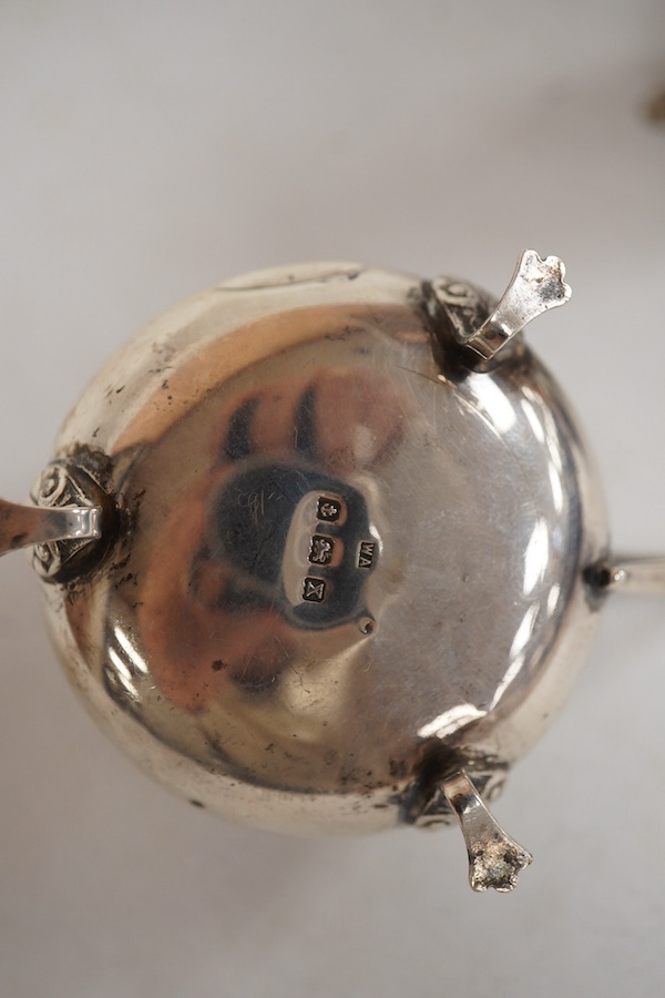 A matched George V three piece silver condiment set, including Birmingham, 1926 and 1927.