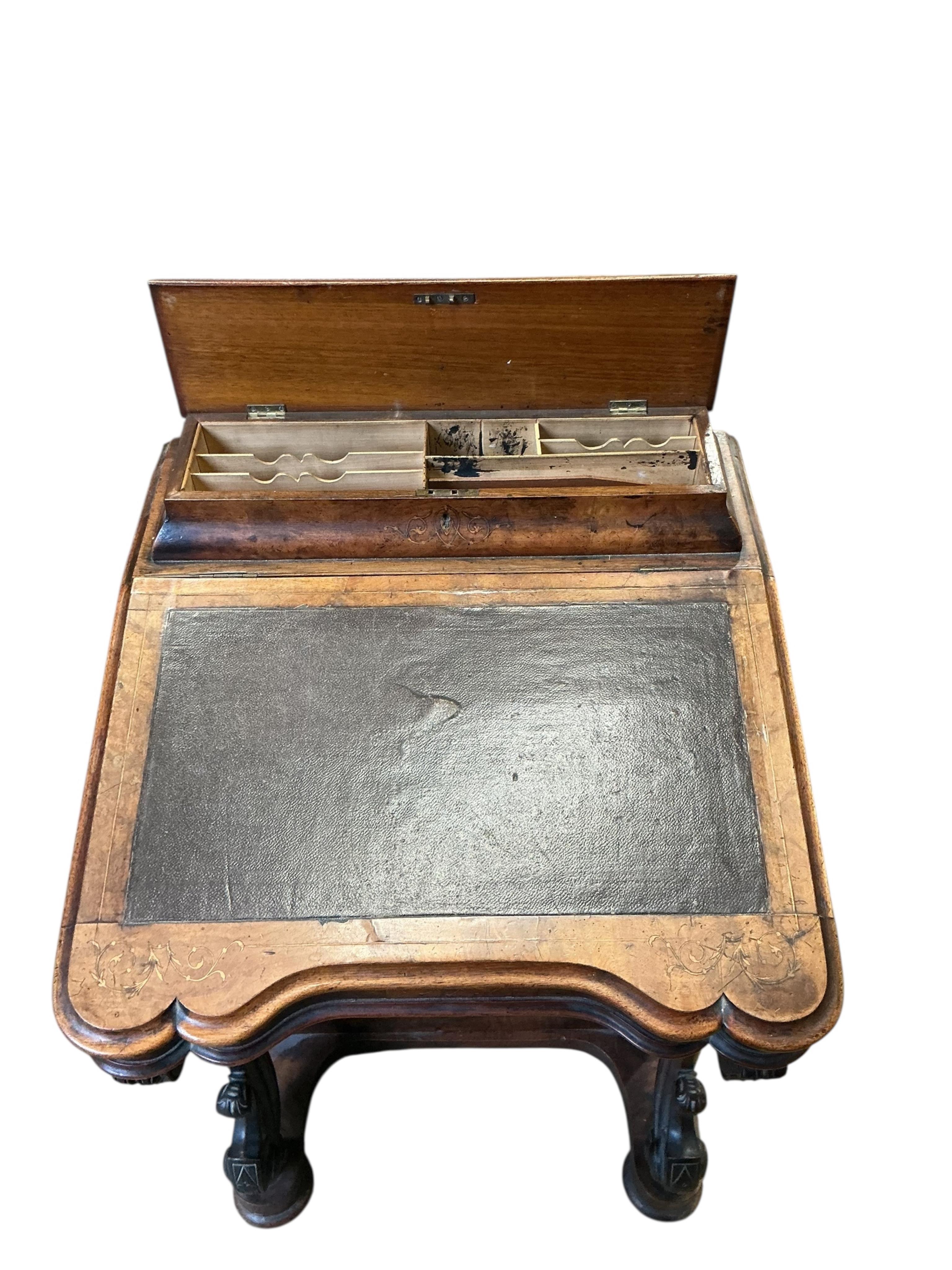 Lot 1310 , A Victorian walnut and marquetry Davenport,width 54cm,depth 53cm, height 81cm