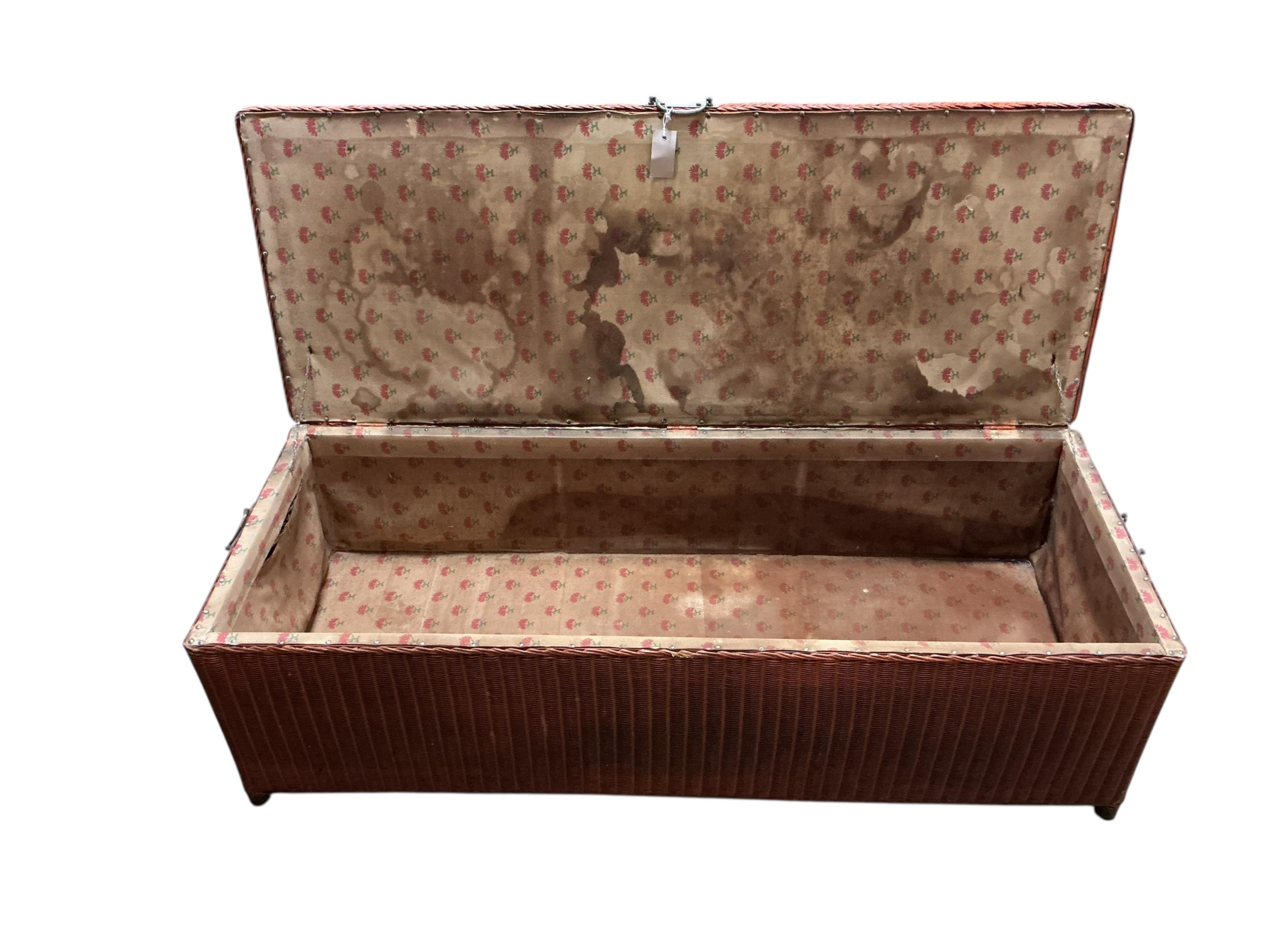 Lot 157 , A vintage Lloyd Loom ottoman, width 133cm, depth 52cm, height 39cm