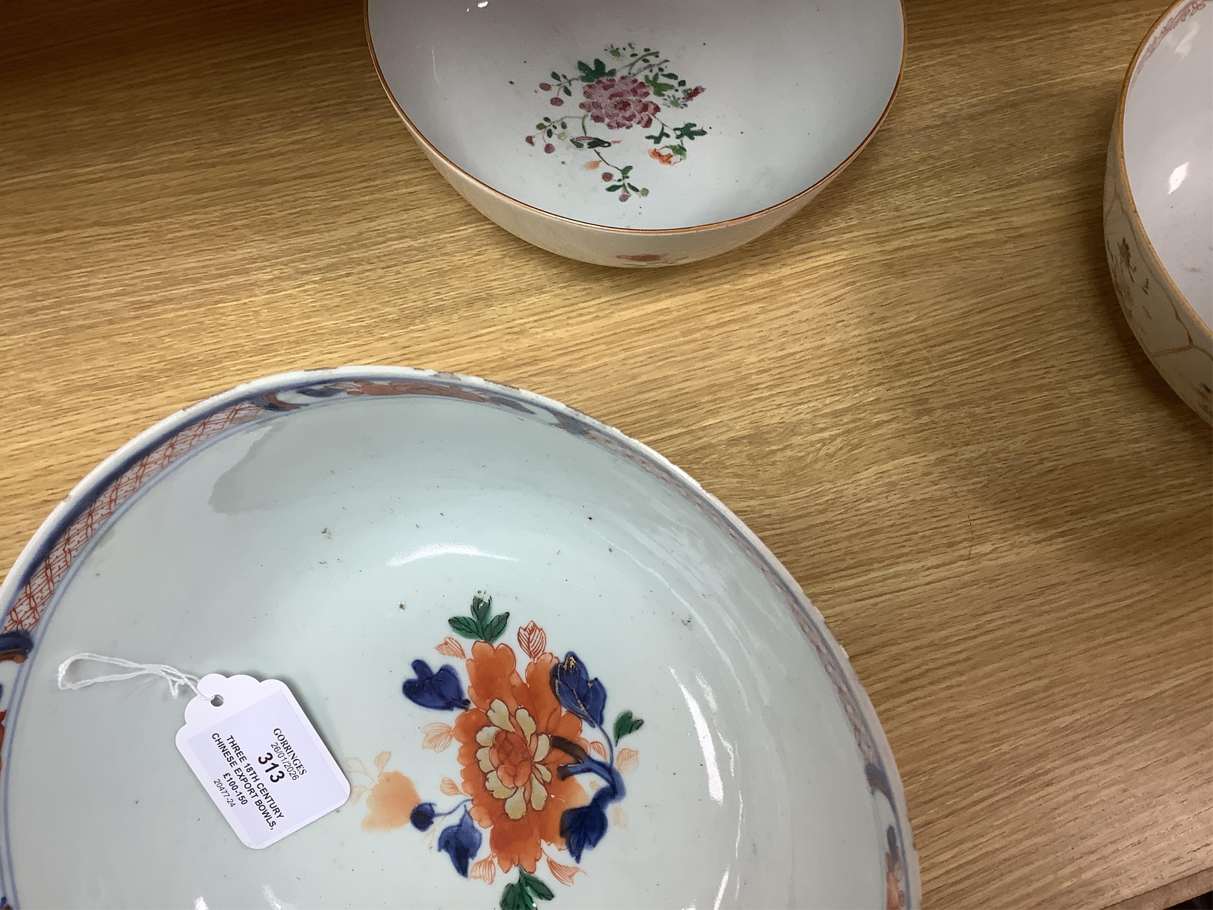 Lot 313 , Three 18th century Chinese export bowls, largest 30cm diameter
