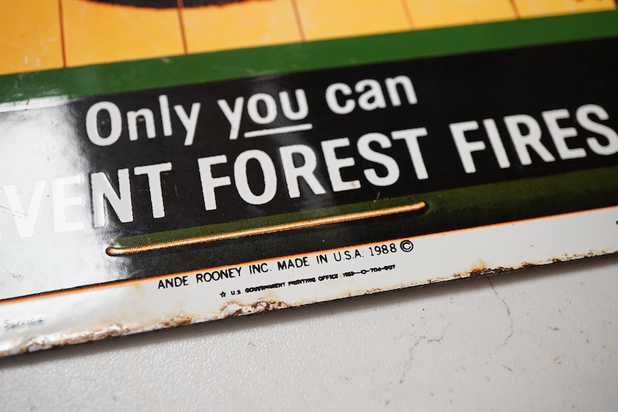 A French enamel sign, Phenix Agence Generale, 46x40cm, together with a reproduction enamel sign, Smokey Please, 1988 Copyright, (2)