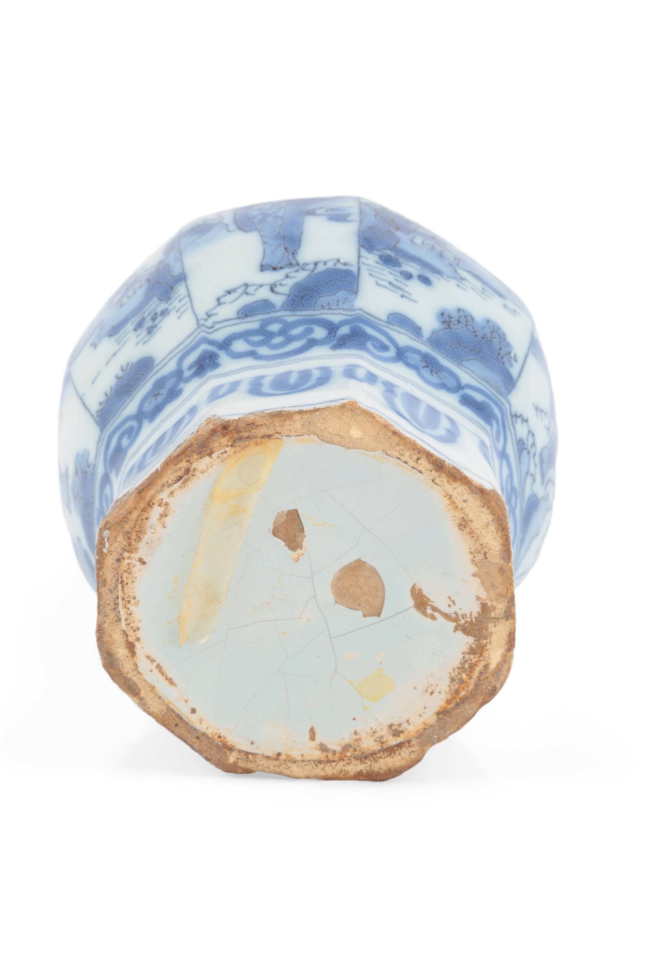 Lot 9 , A Delft kraak style blue and white bottle vase, late 17th century, and an Italian maiolica drug jar