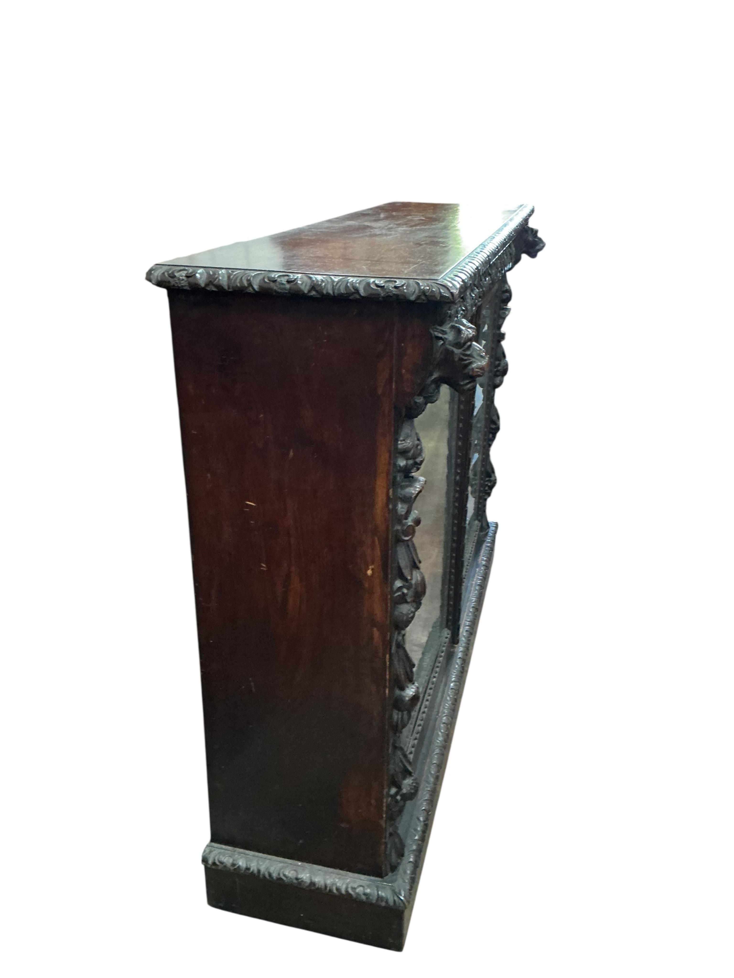 A 19th century Flemish carved glazed oak bookcase, width 139cm, depth 34cm, height 102cm