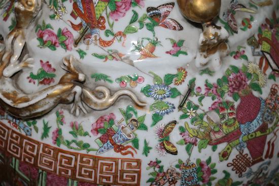 Lot 115 , A large Canton floor vase, broken & rivet repaired with carved and pierced hardwood stand